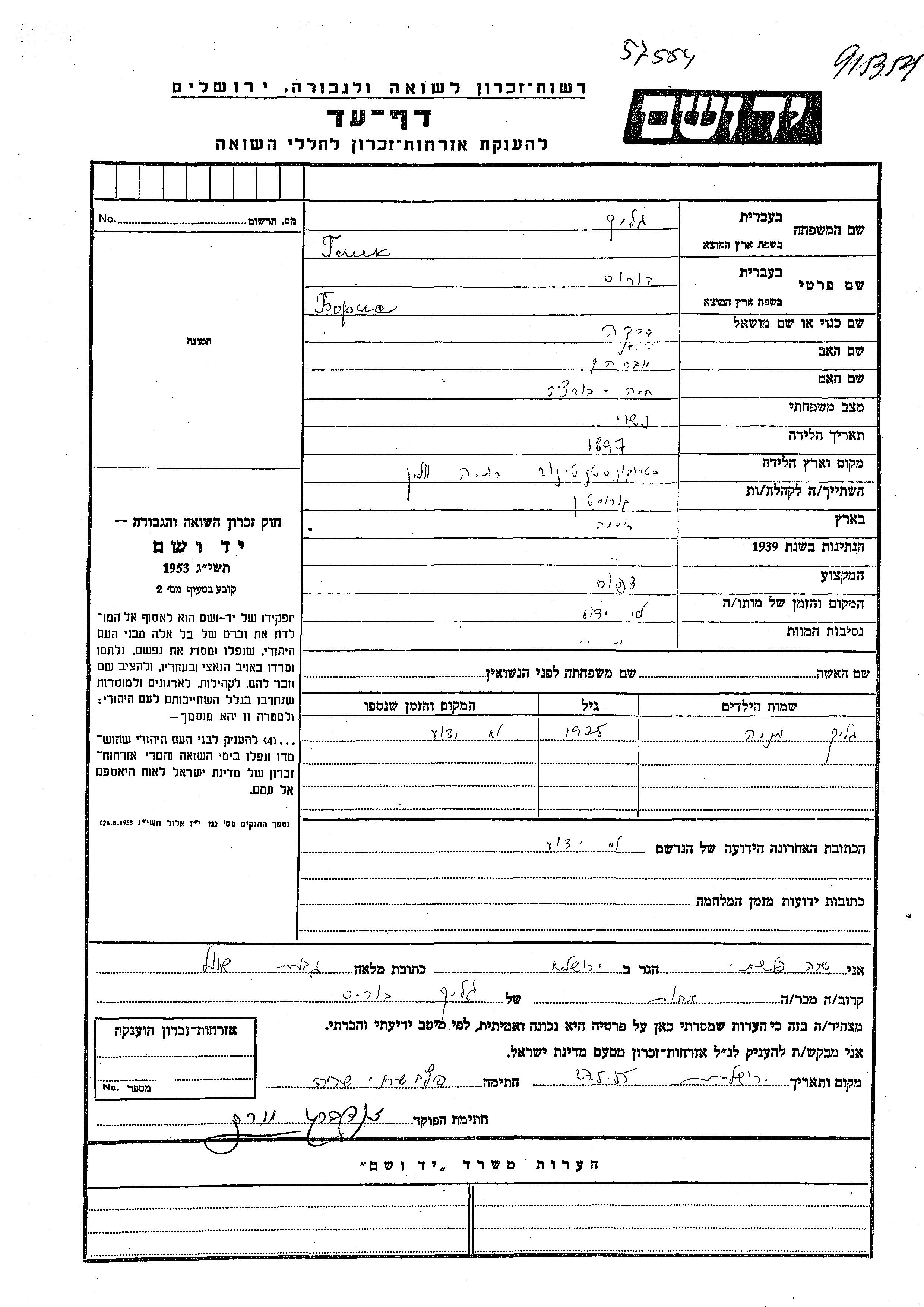 יד ושם - המפעל להנצחת השמות בדפי עד