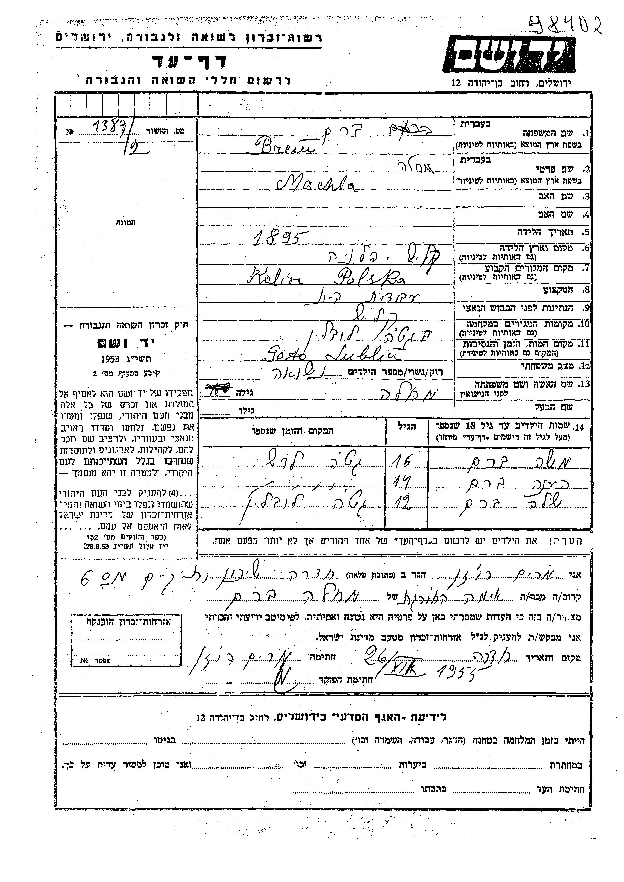 יד ושם - המפעל להנצחת השמות בדפי עד
