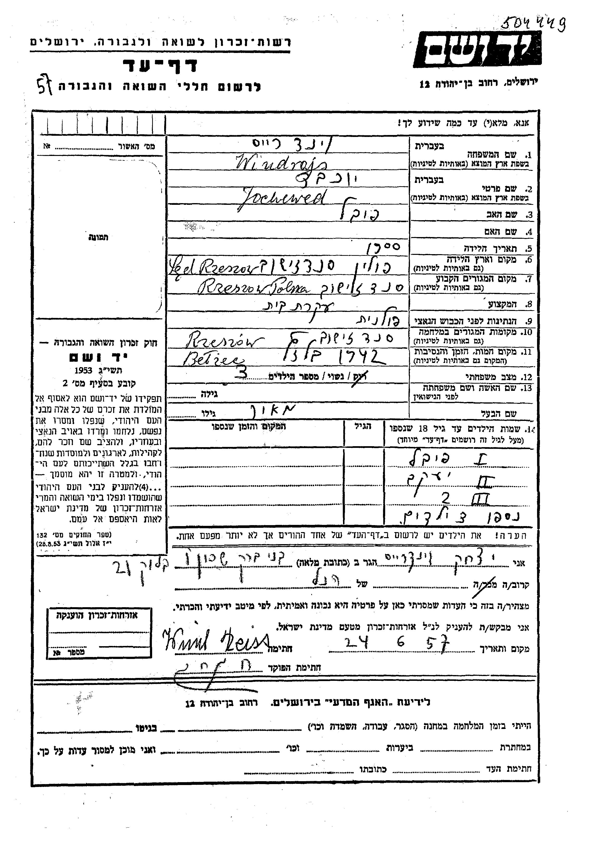 חיפוש שם מוסר דף העד. חיפוש לפי כל שם פרטי, כולל כינוי או שם חיבה