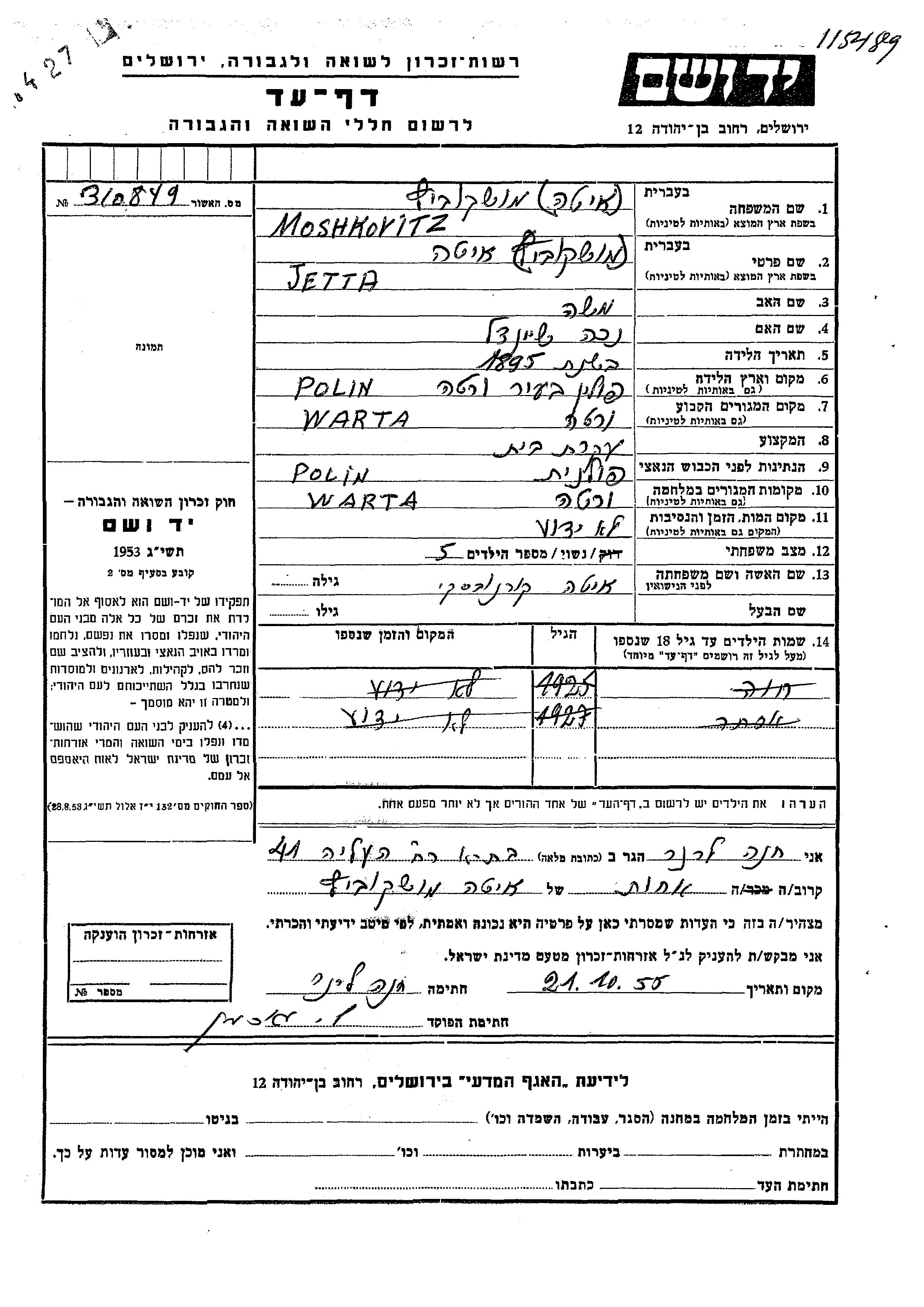 חיפוש שם מוסר דף העד. חיפוש לפי כל שם פרטי, כולל כינוי או שם חיבה