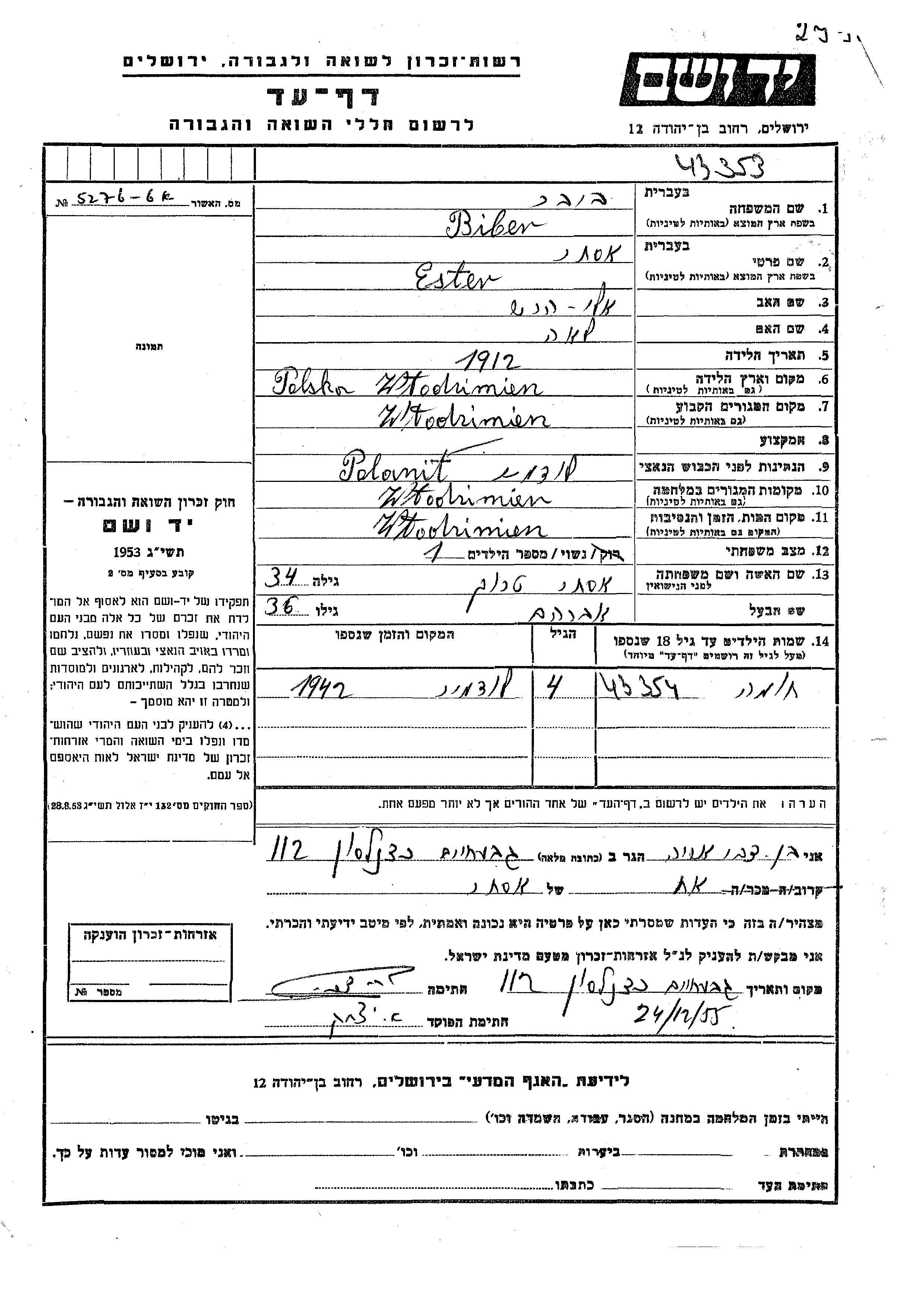 יד ושם - המפעל להנצחת השמות בדפי עד