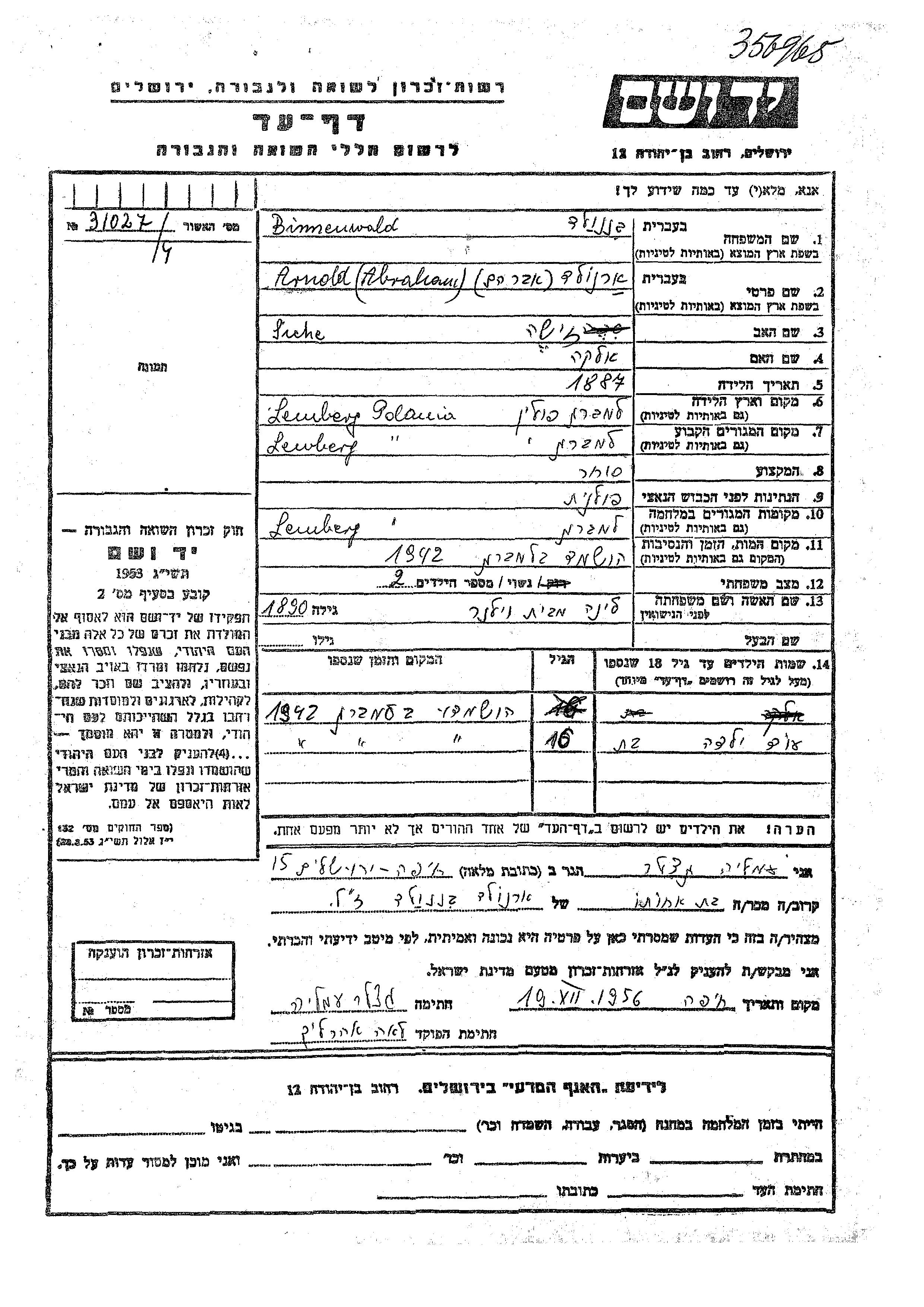 Binnenwald שם פרטי לא ידוע Lemberg, פולין דף-עד