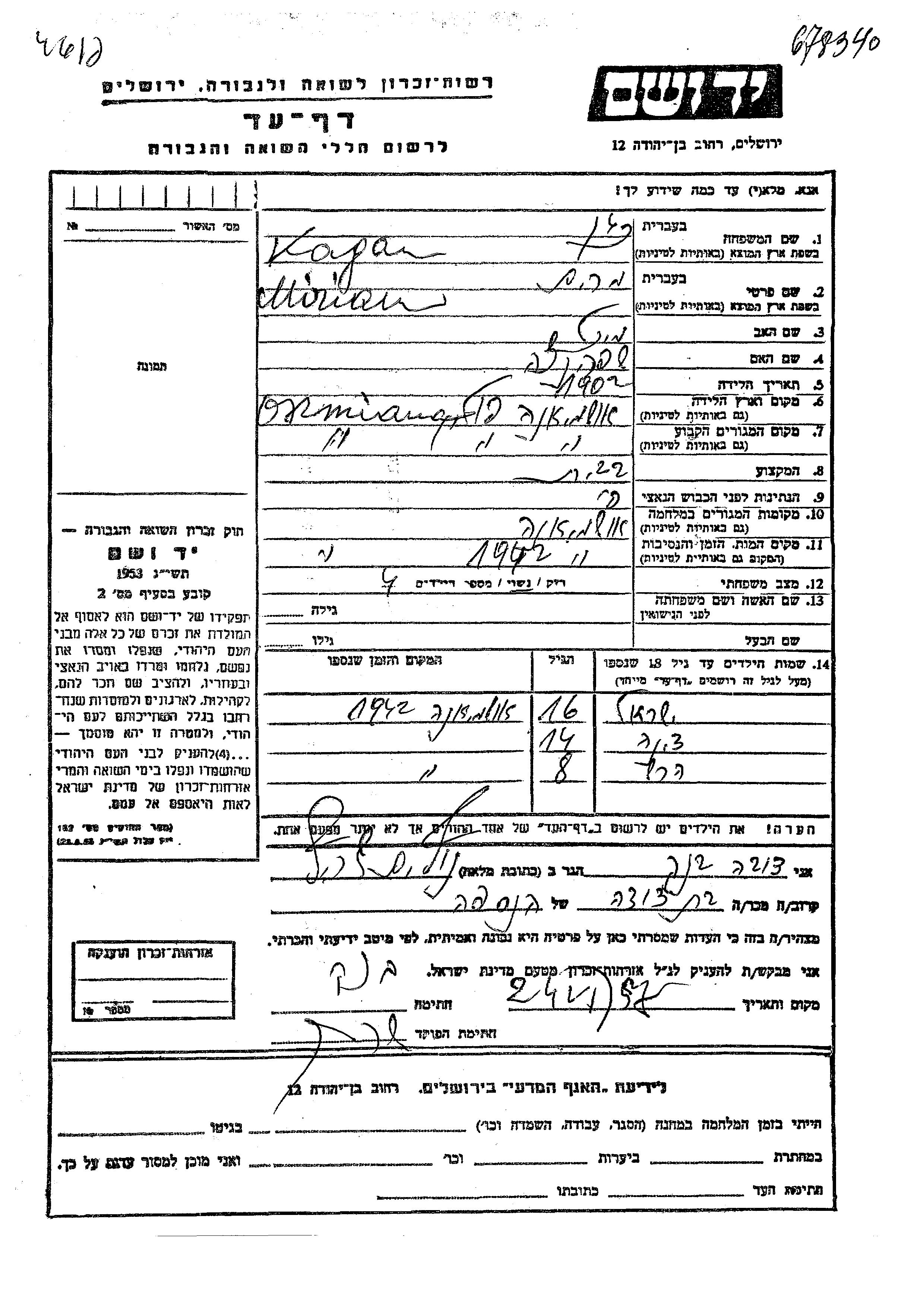 יד ושם - המפעל להנצחת השמות בדפי עד