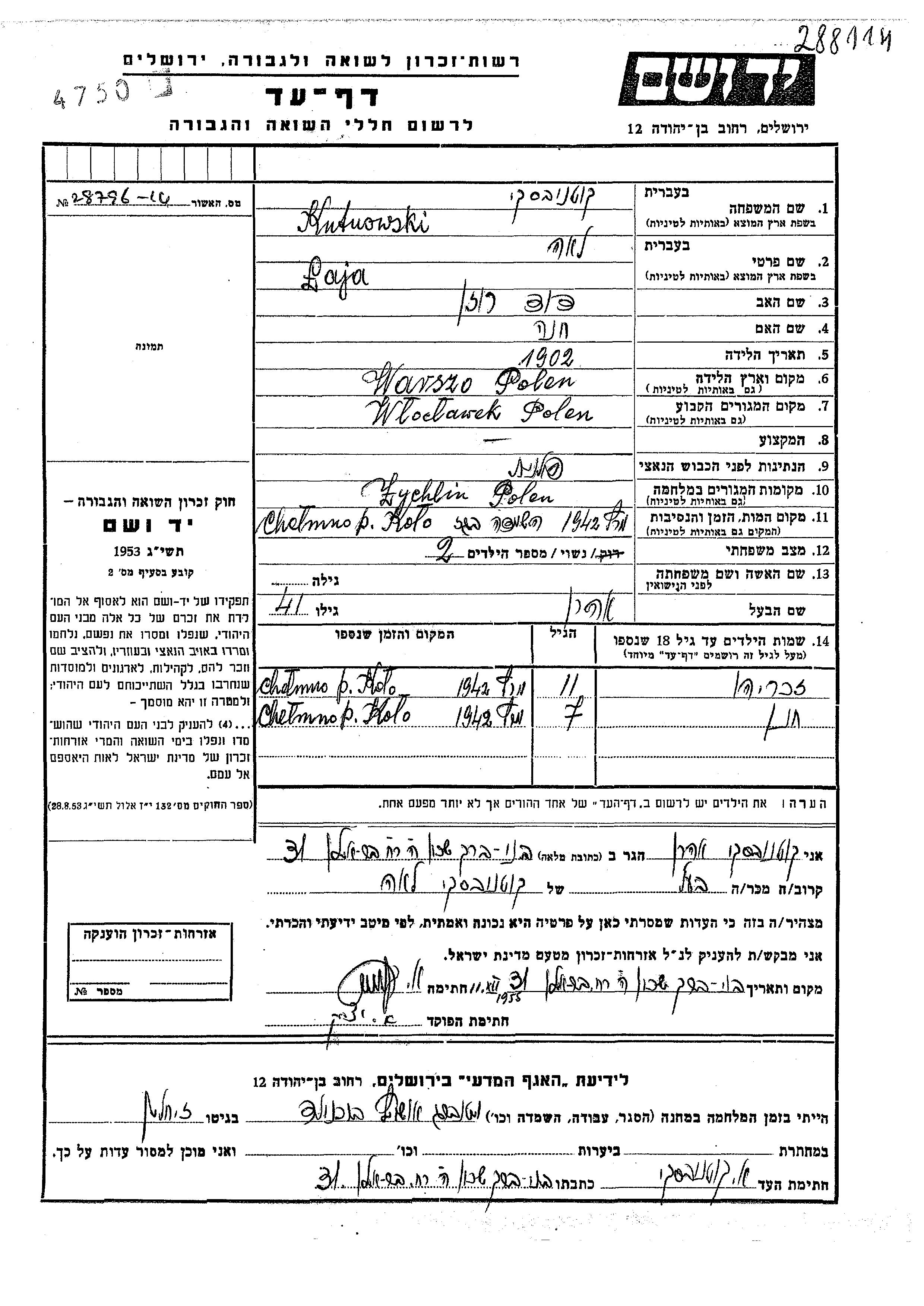 זכריהו Kutnowski נולד לאהרן וLaja לבית רוזן. הוא היה ילד. לפני מלחמת העולם השניה התגורר בWloclawek שבפולין. בזמן המלחמה הוא היה בZychlin שבפולין. זכריהו נרצח בשואה.