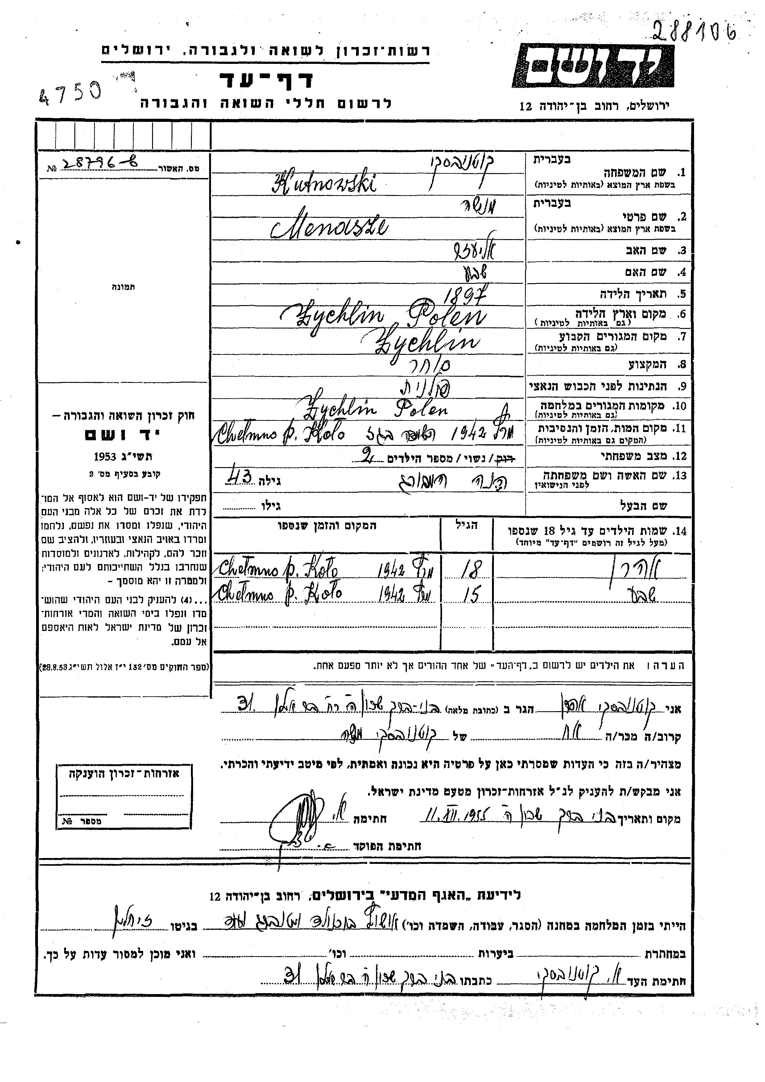 יד ושם - המפעל להנצחת השמות בדפי עד