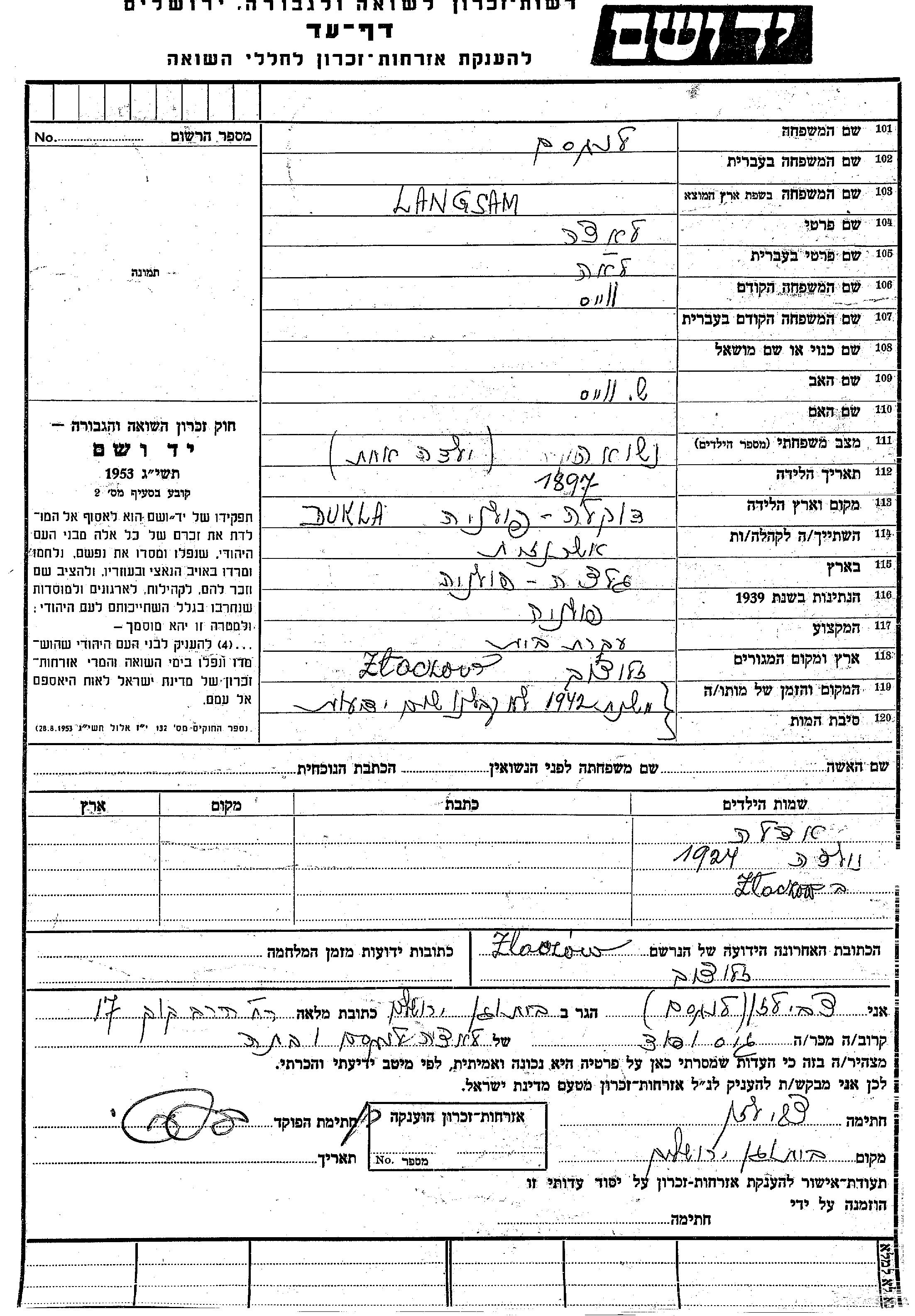 יד ושם - המפעל להנצחת השמות בדפי עד