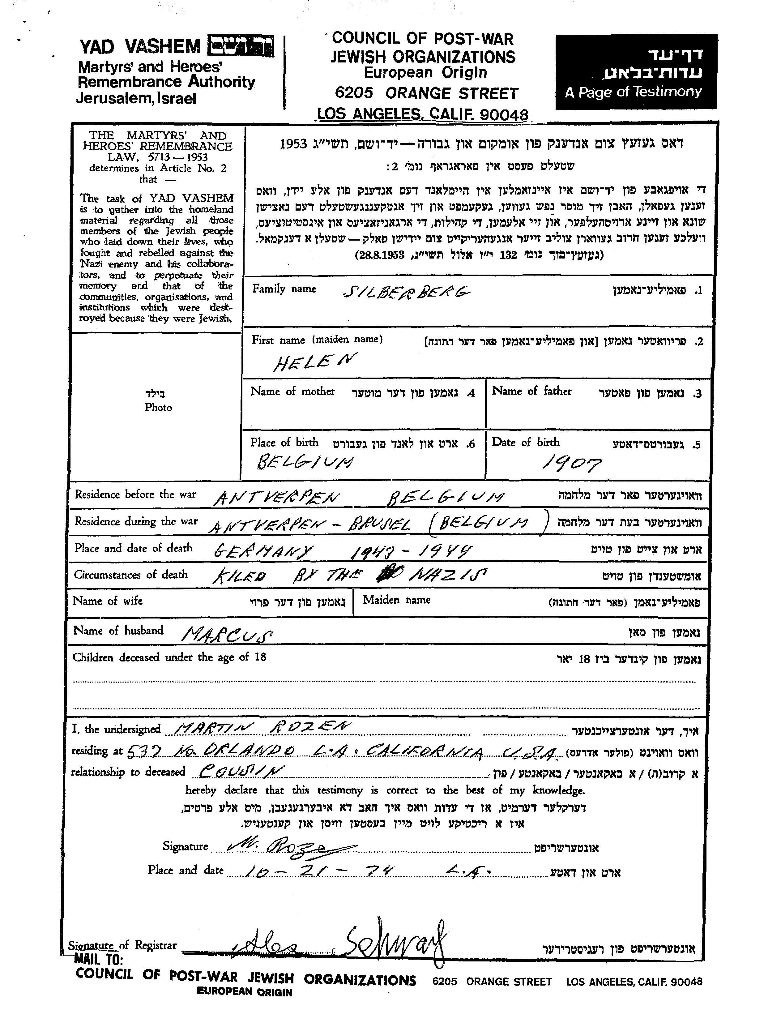 Search by name of any place during the Holocaust period: Town,Village, Camp, Ghetto, District, Region or Country