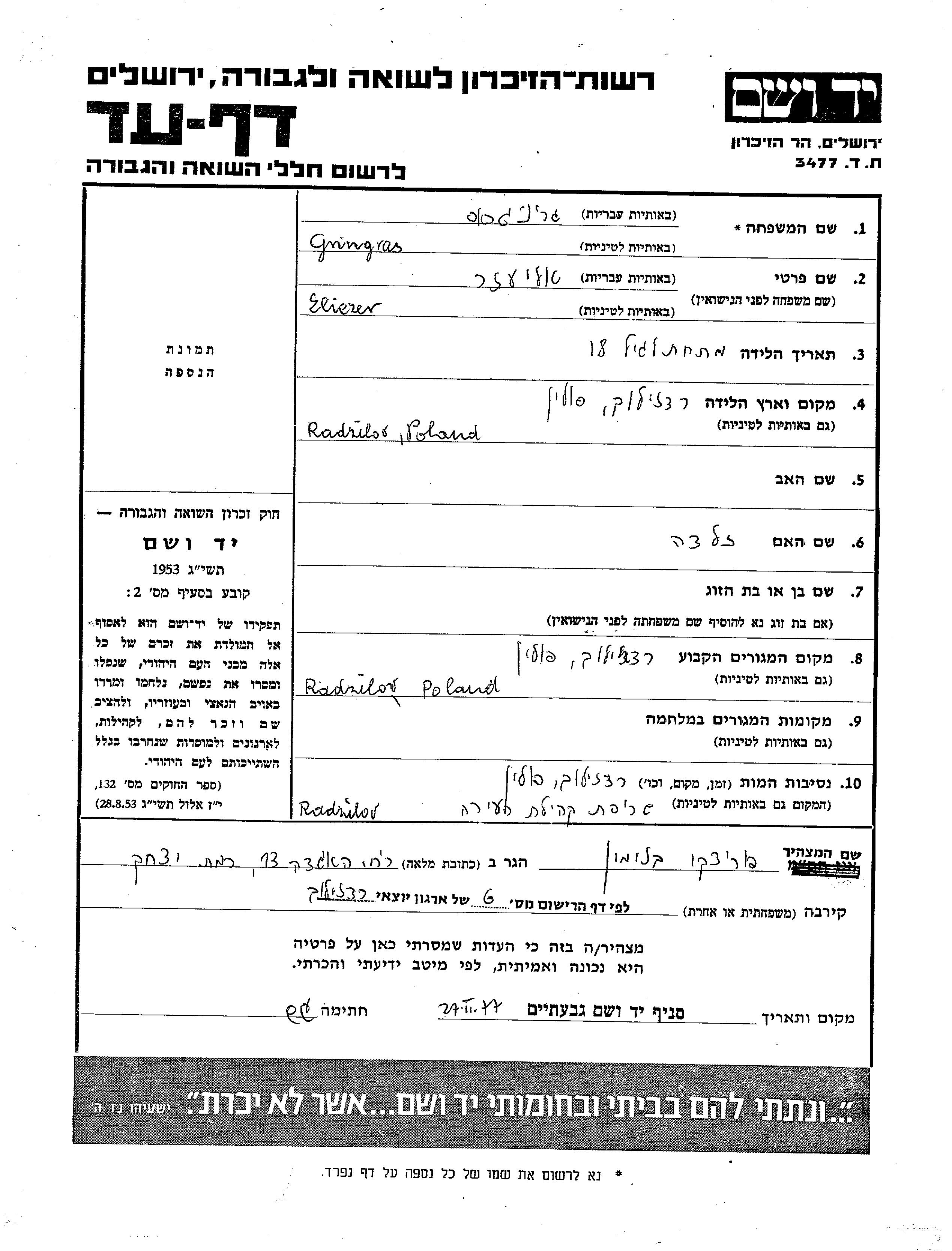 גרינגרס אליעזר Radzilove, פולין דף-עד