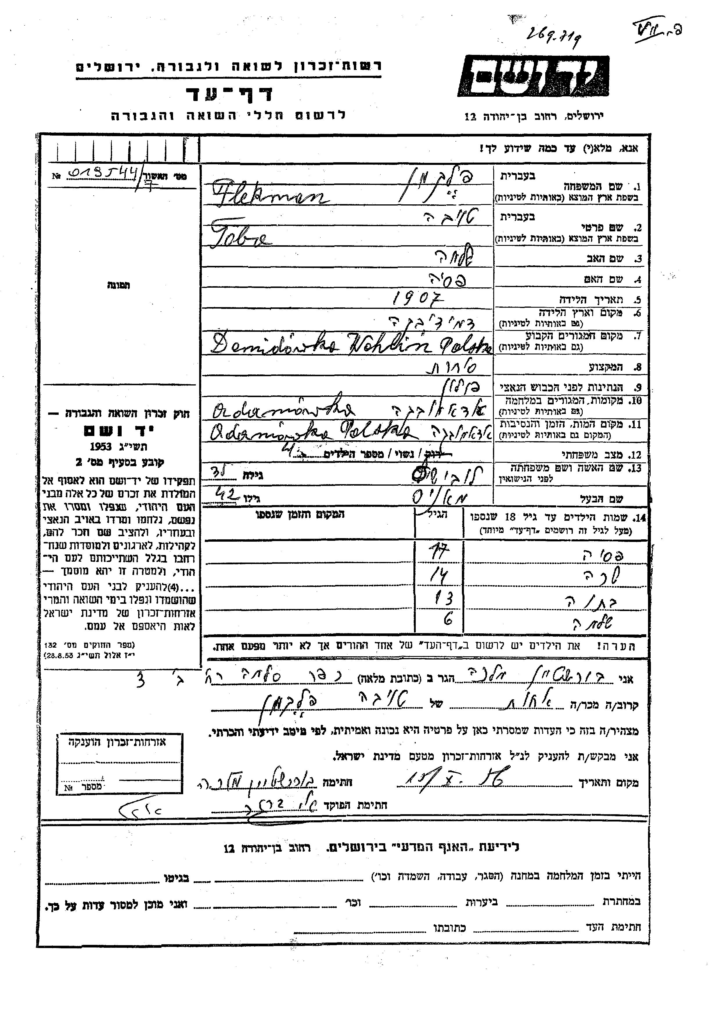 יד ושם - המפעל להנצחת השמות בדפי עד
