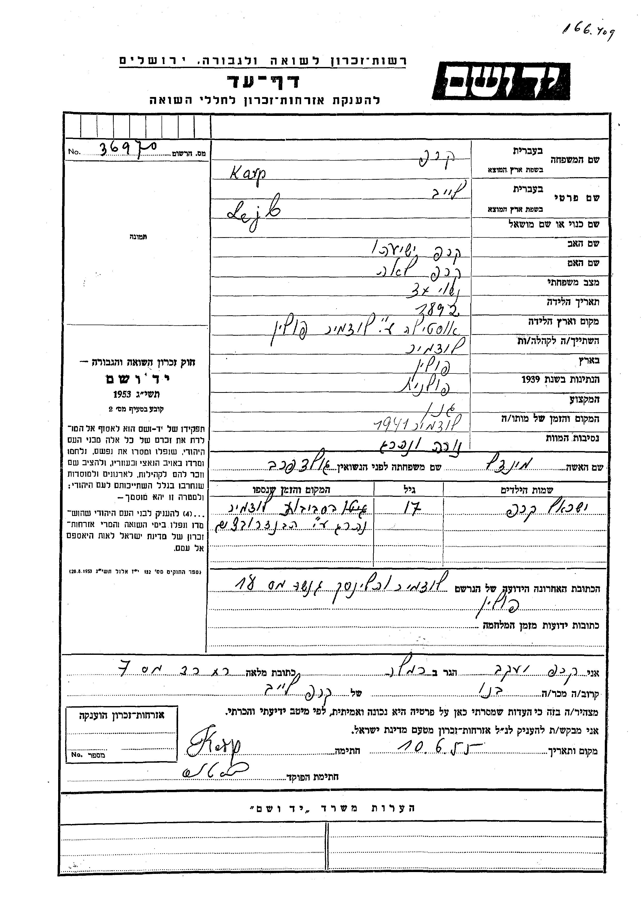 קרפ ישראל Wlodzimierz, פולין דף-עד