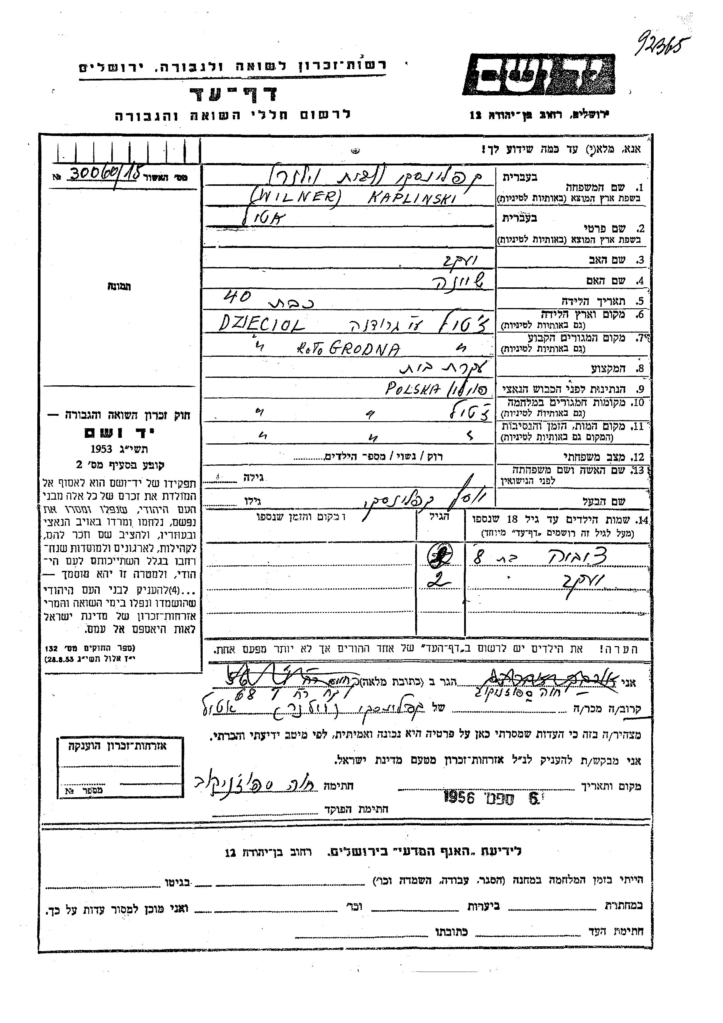יד ושם - המפעל להנצחת השמות בדפי עד