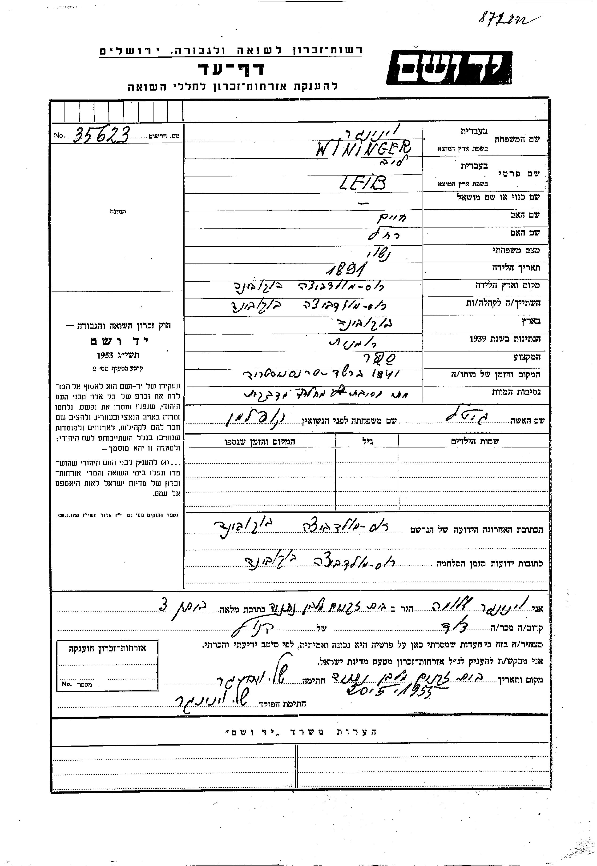 חיפוש שם מוסר דף העד. חיפוש לפי כל שם פרטי, כולל כינוי או שם חיבה