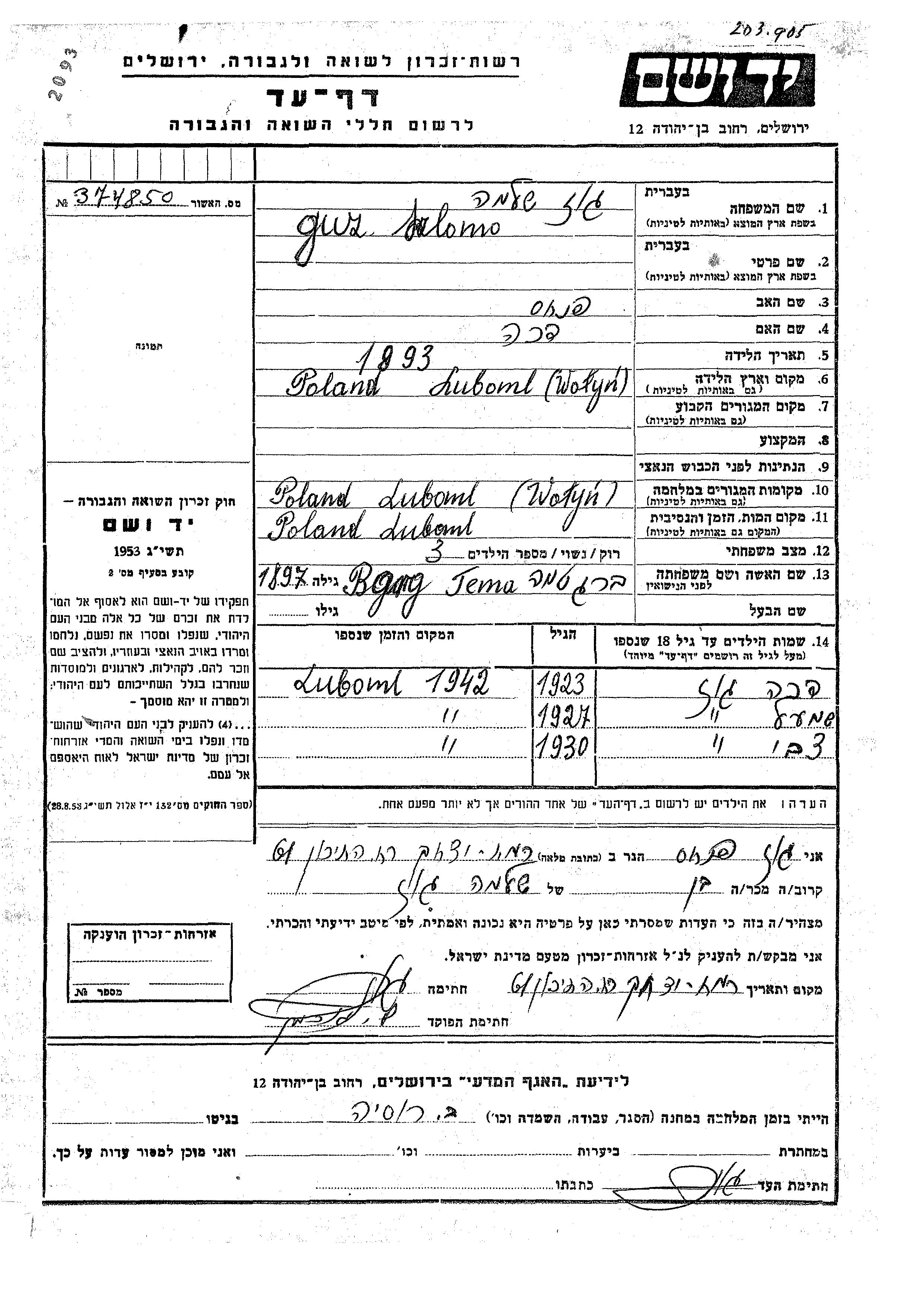 יד ושם - המפעל להנצחת השמות בדפי עד