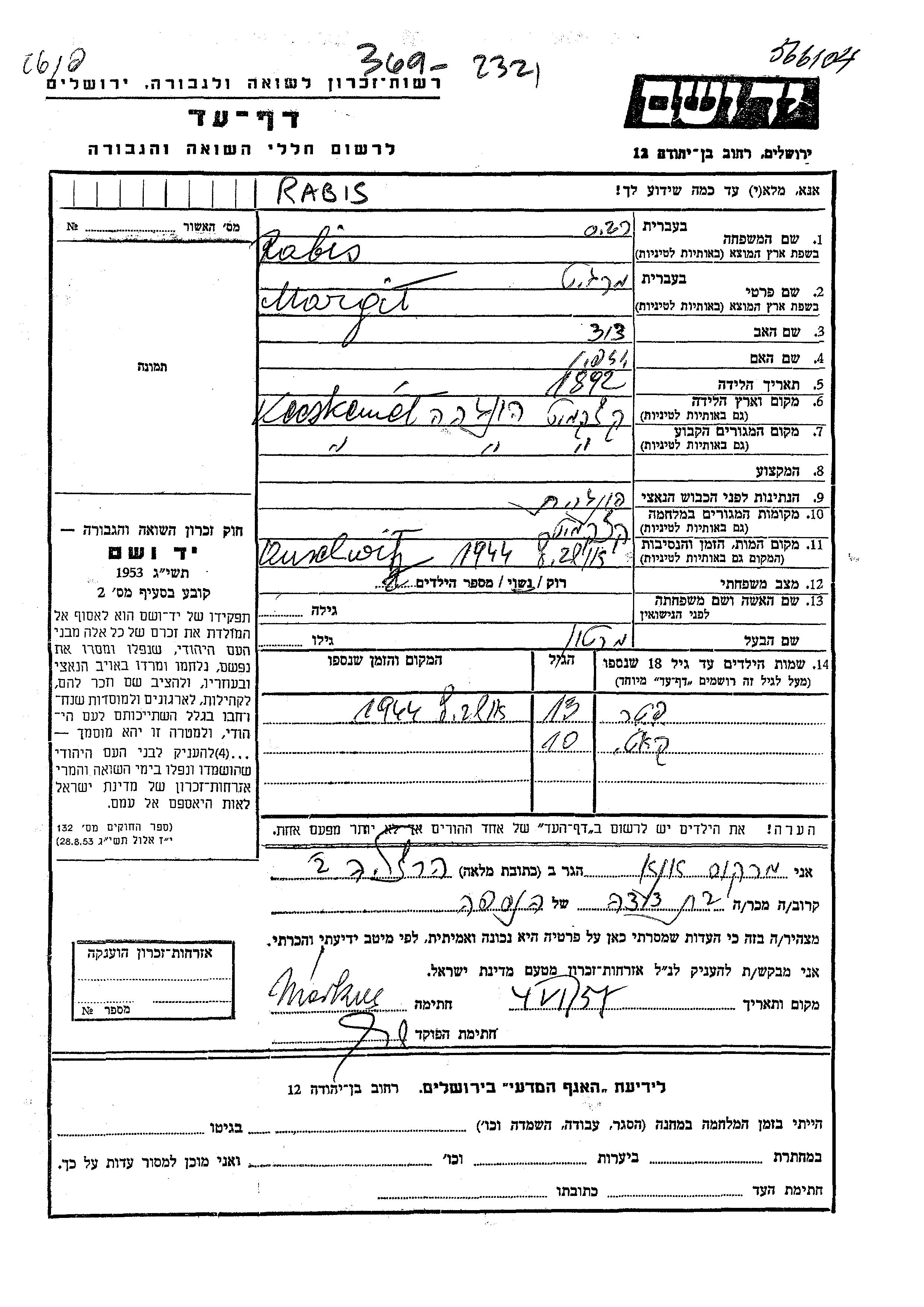 יד ושם - המפעל להנצחת השמות בדפי עד
