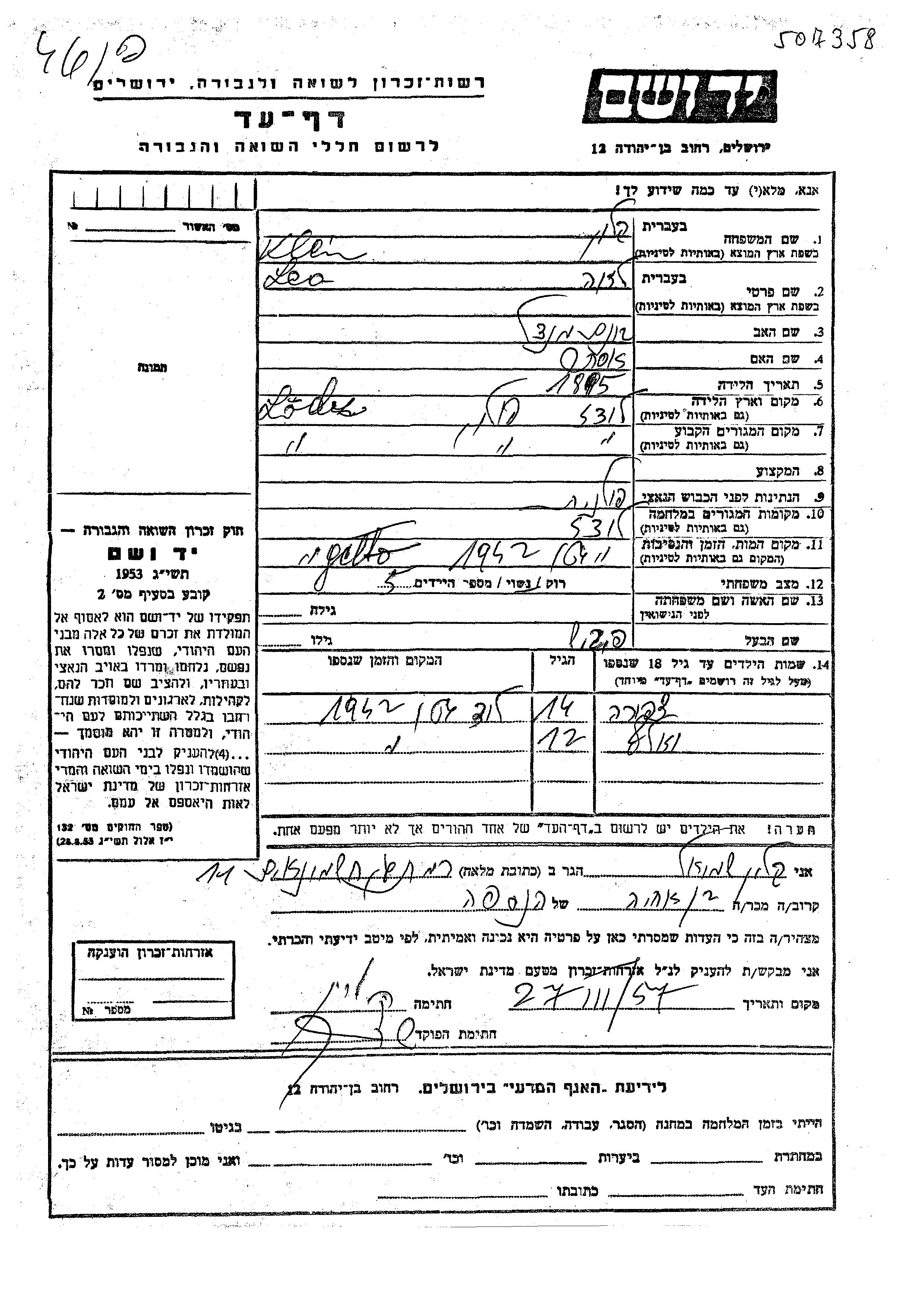 יד ושם - המפעל להנצחת השמות בדפי עד