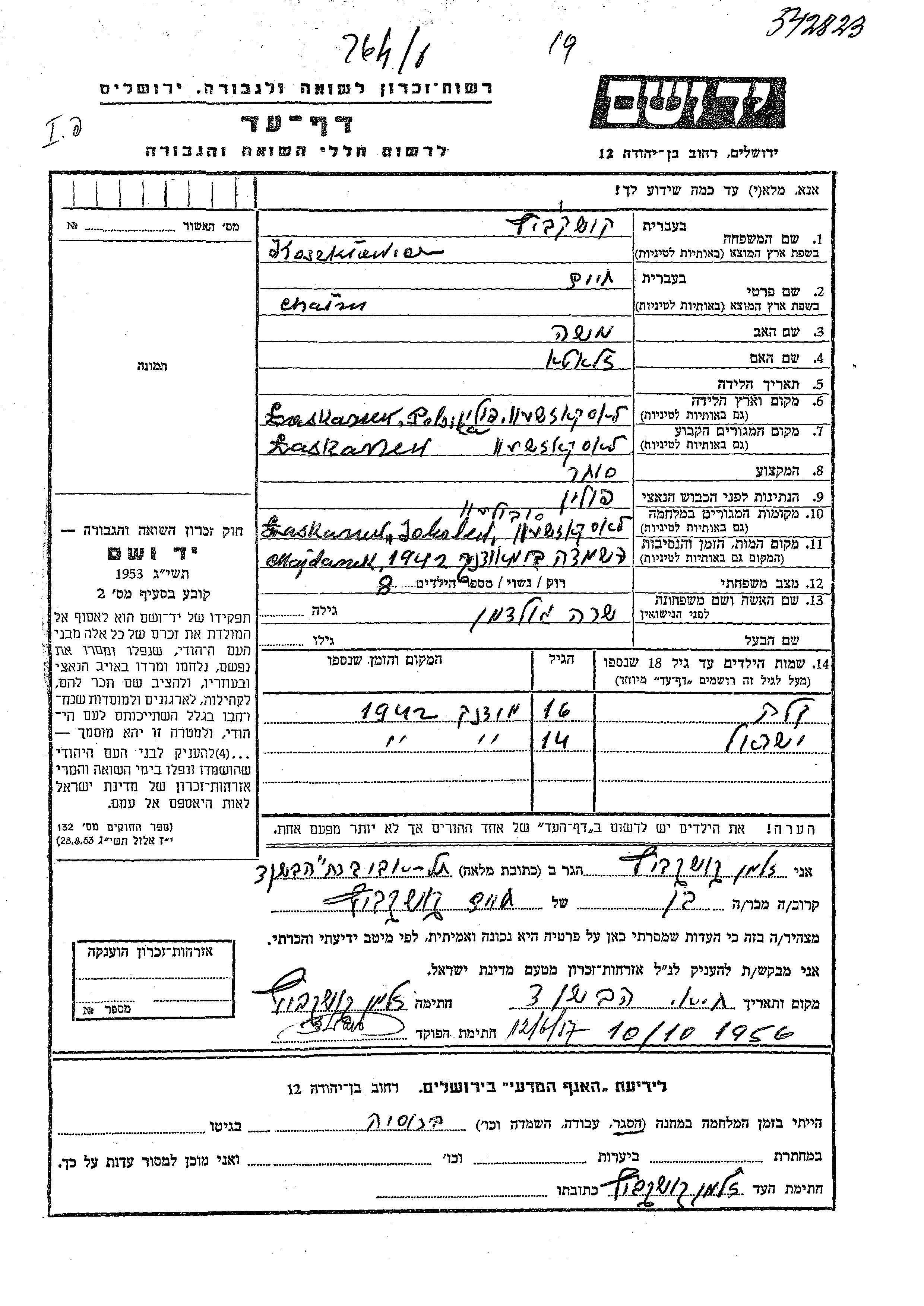יד ושם - המפעל להנצחת השמות בדפי עד