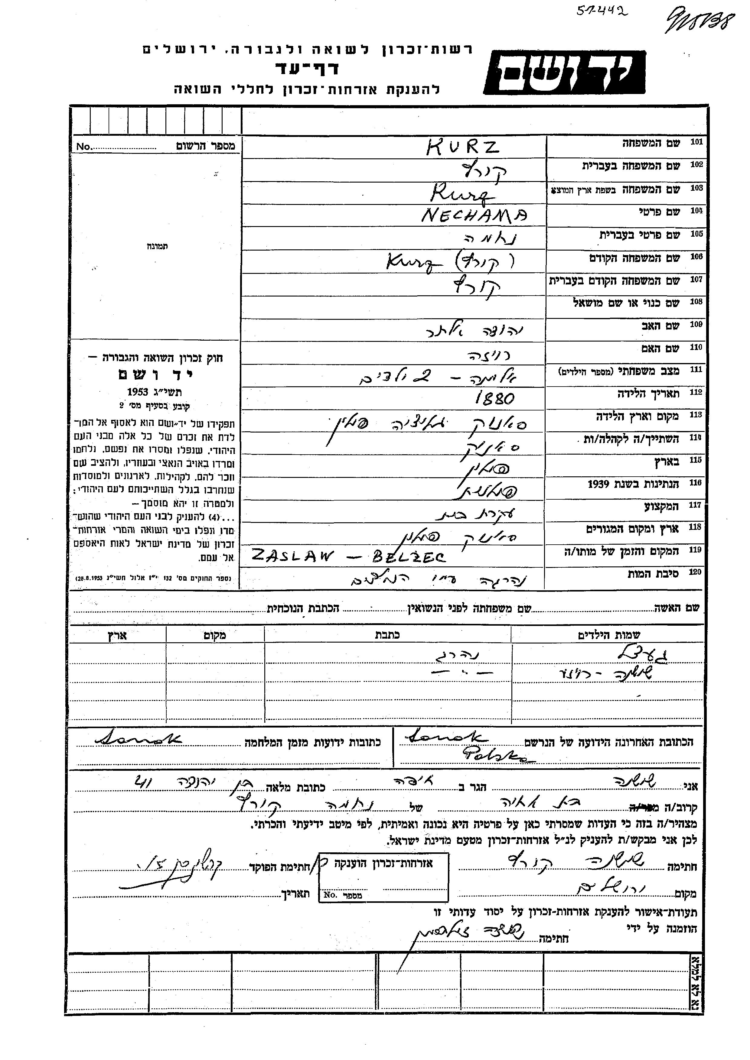 יד ושם - המפעל להנצחת השמות בדפי עד
