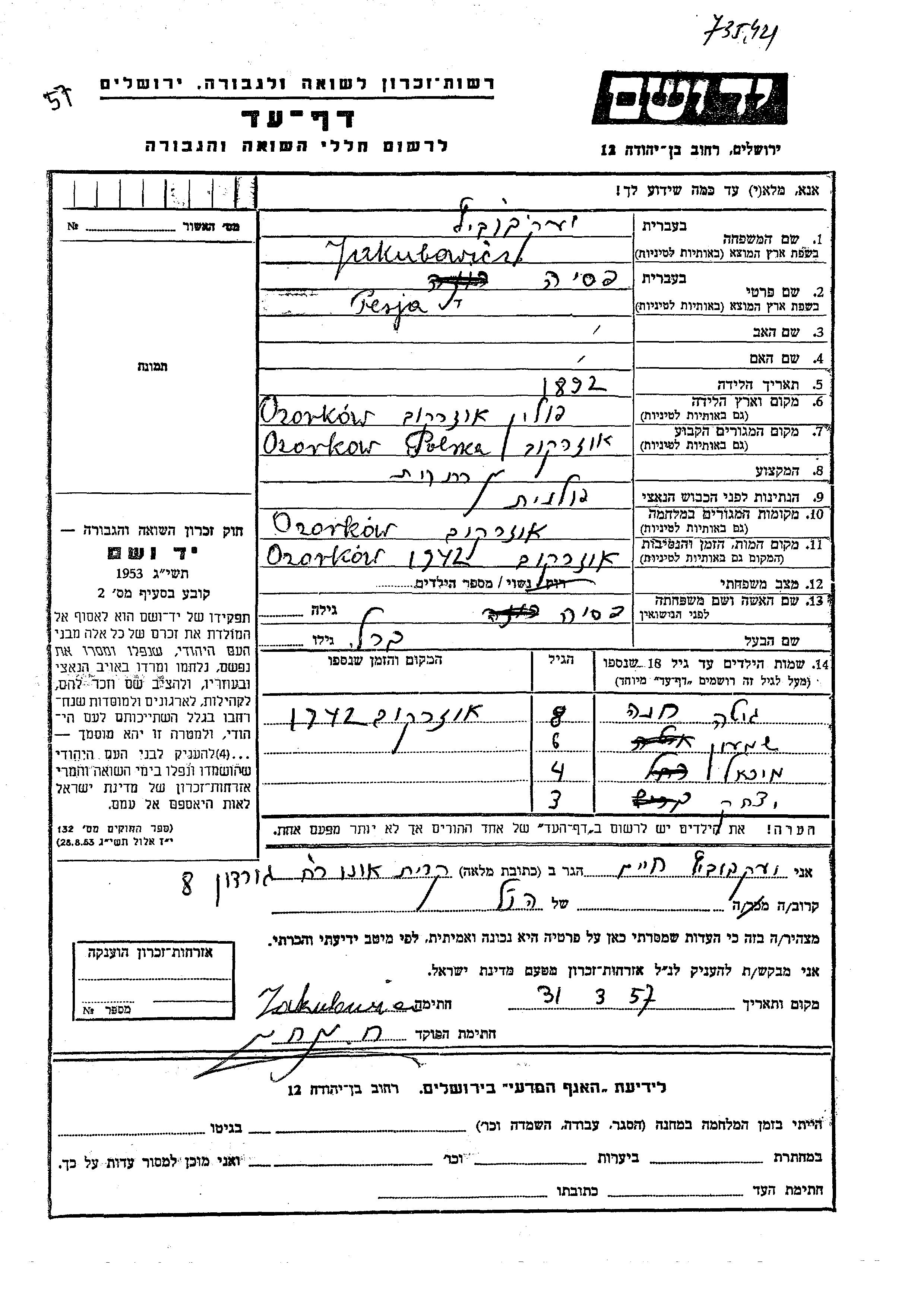 Jakubowicz יצחק Ozorkow, פולין דף-עד