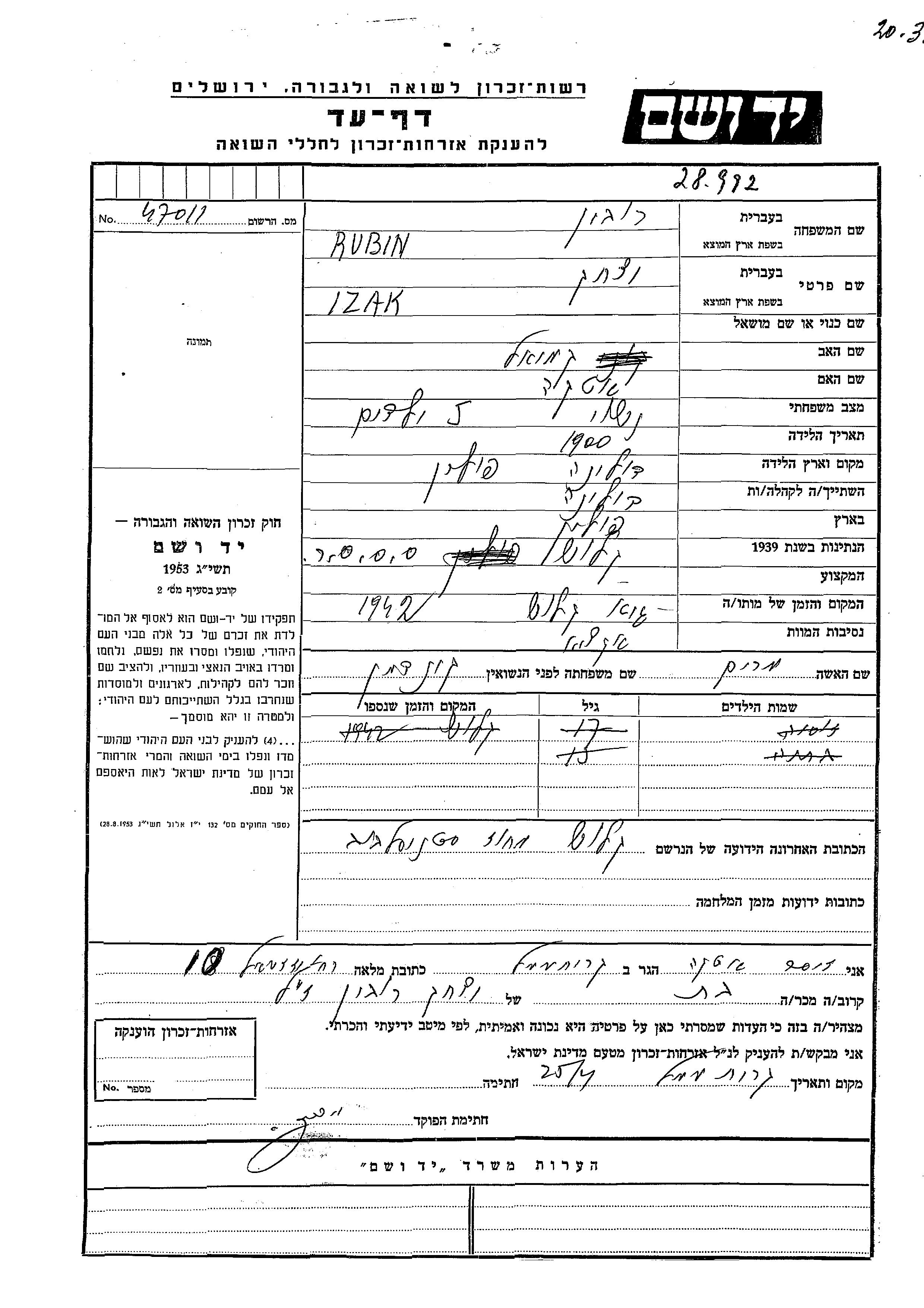יד ושם - המפעל להנצחת השמות בדפי עד