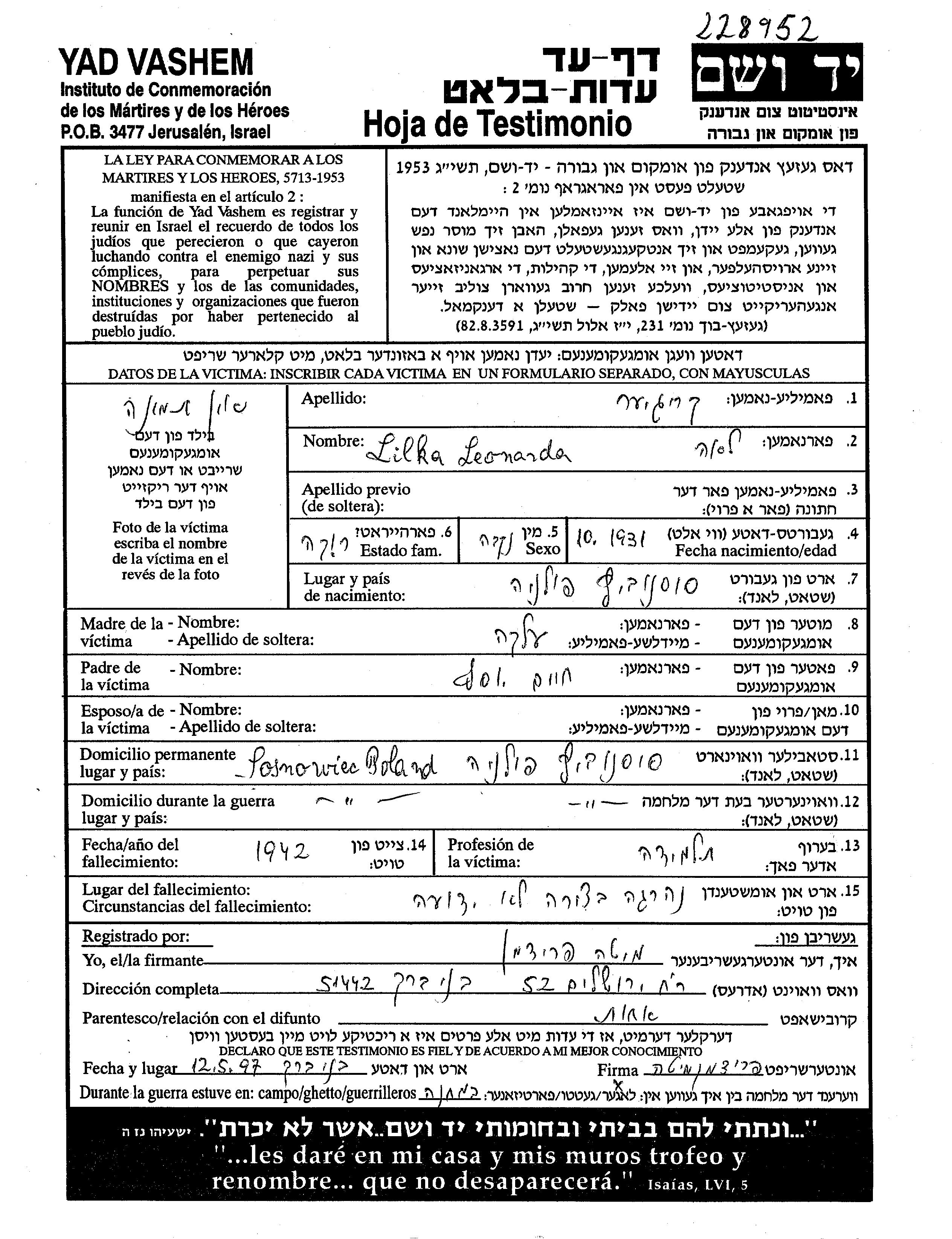יד ושם - המפעל להנצחת השמות בדפי עד