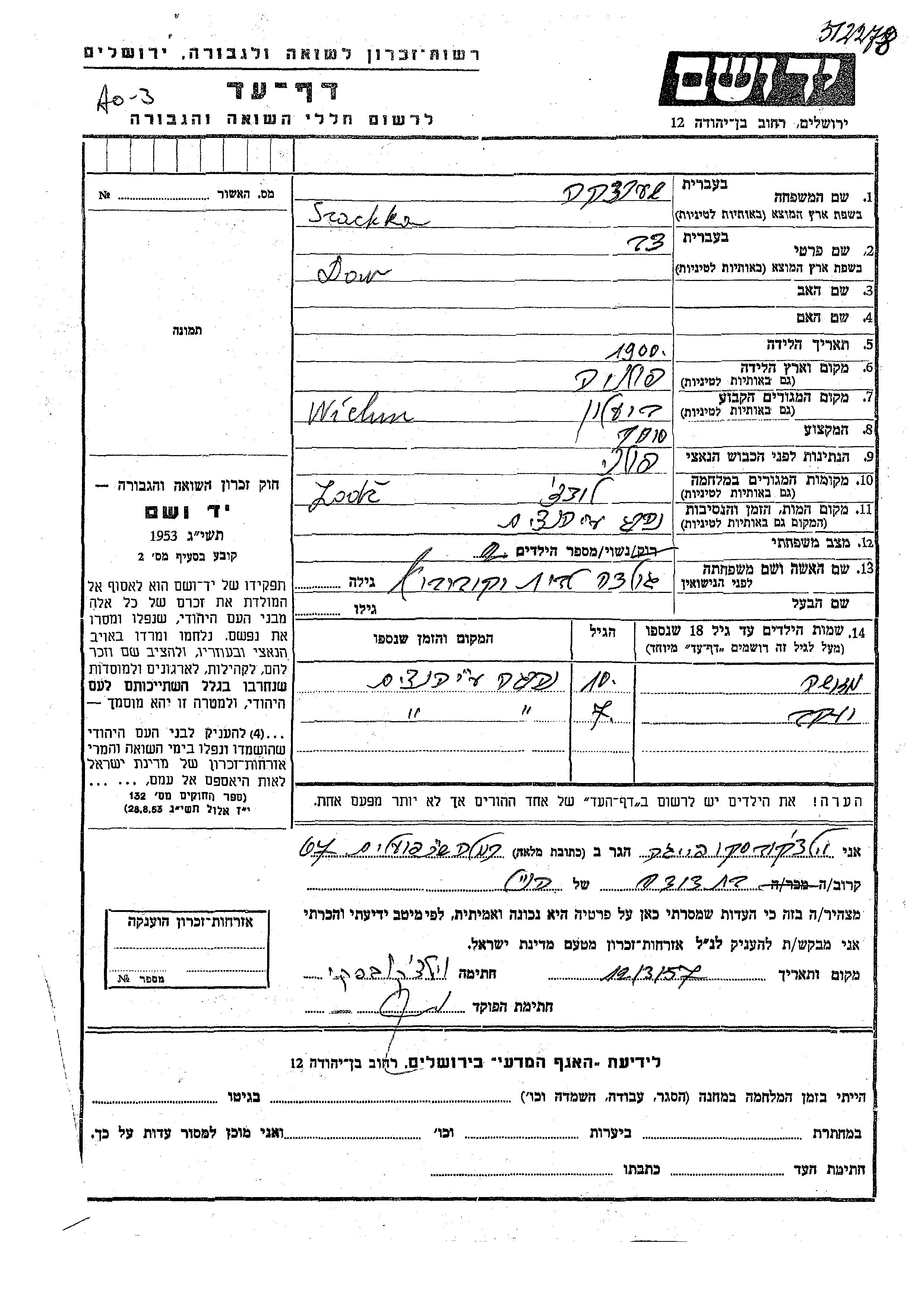 חיפוש שם מוסר דף העד. חיפוש לפי כל שם פרטי, כולל כינוי או שם חיבה