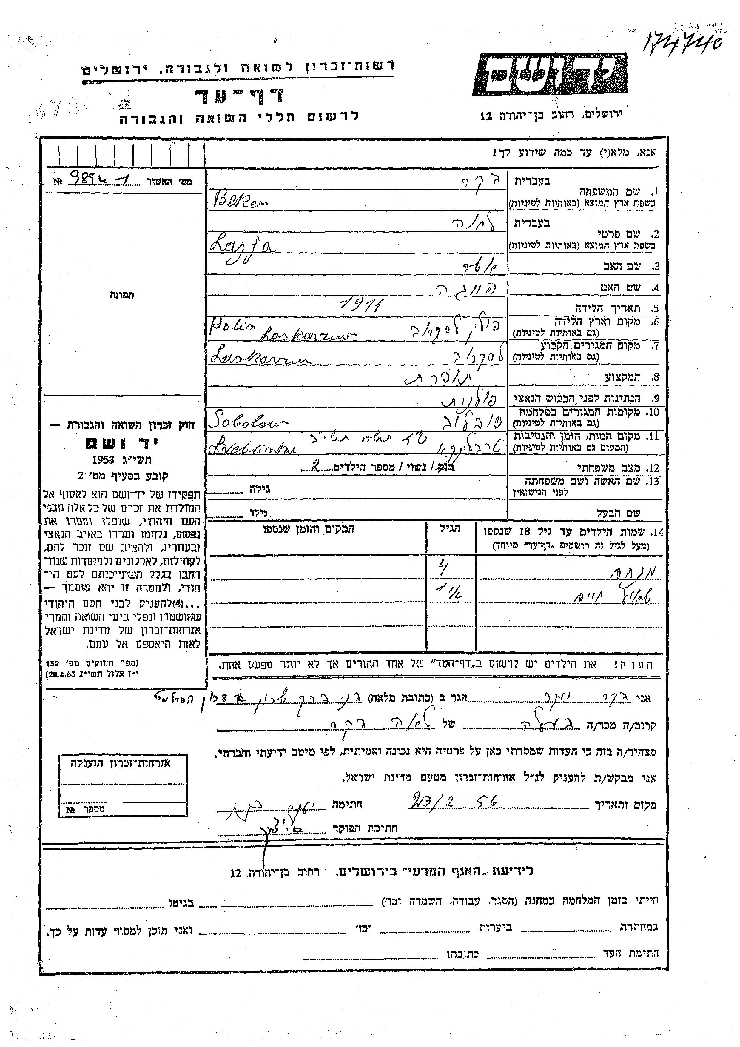 יד ושם - המפעל להנצחת השמות בדפי עד