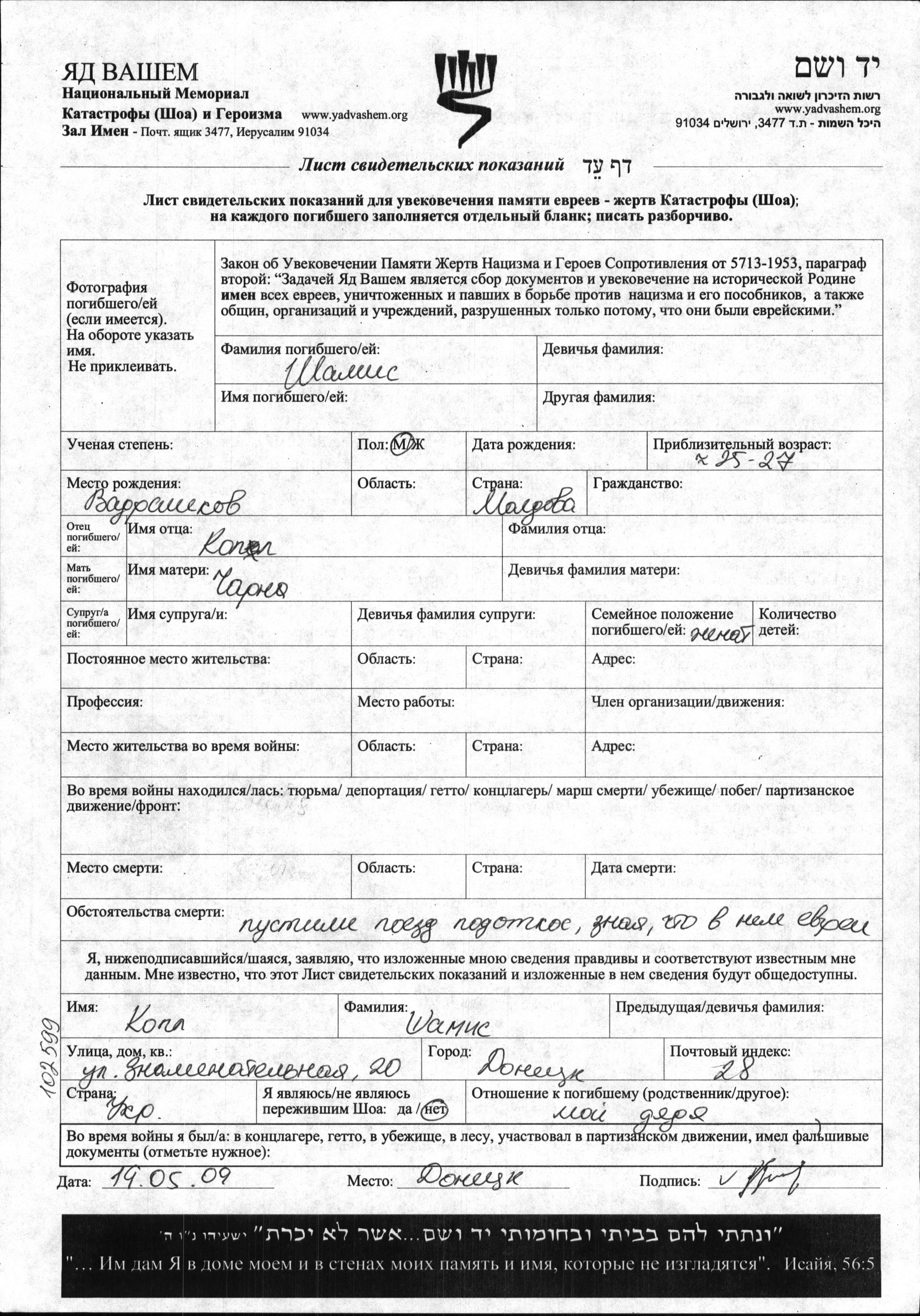 יד ושם - המפעל להנצחת השמות בדפי עד