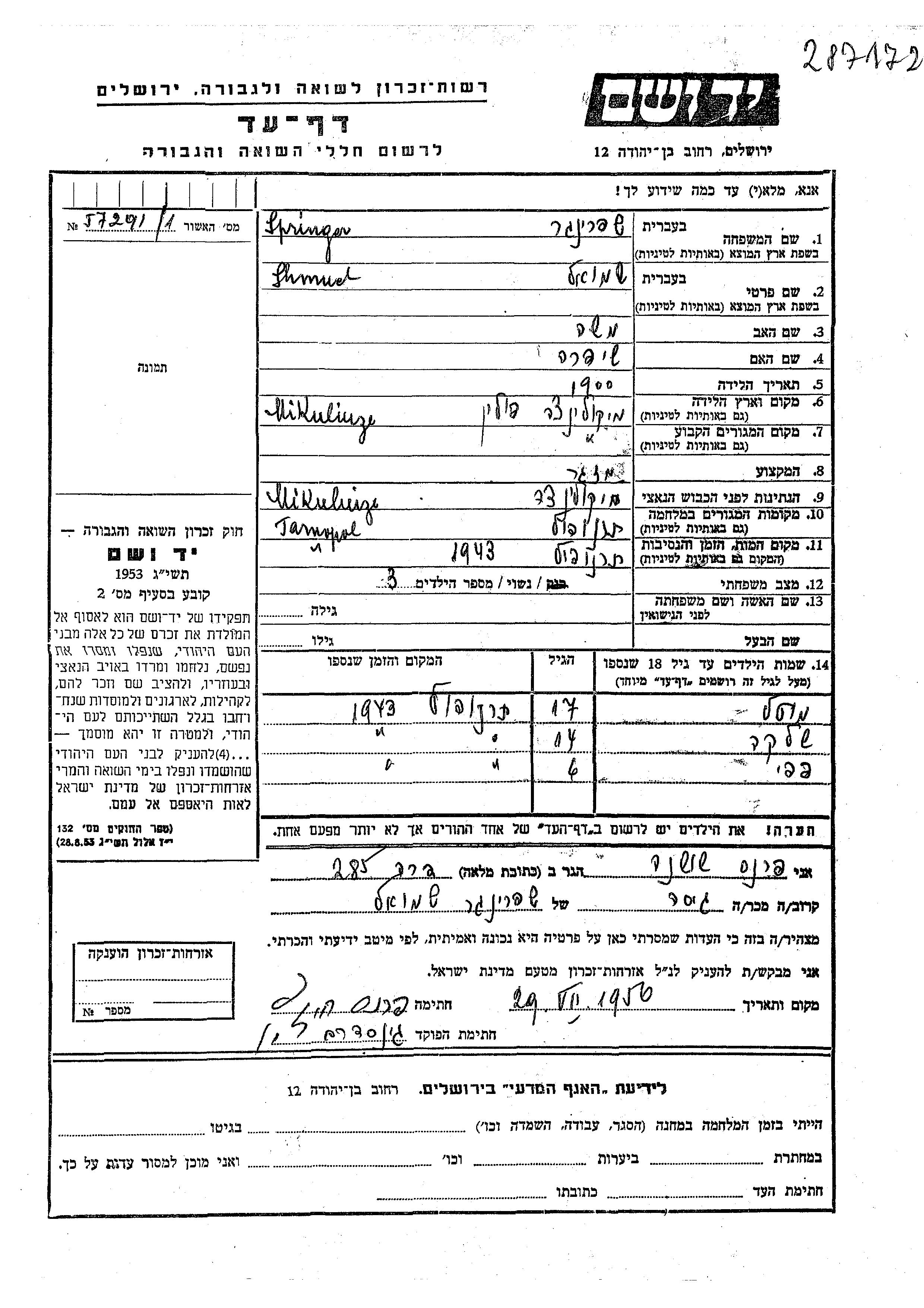 יד ושם - המפעל להנצחת השמות בדפי עד
