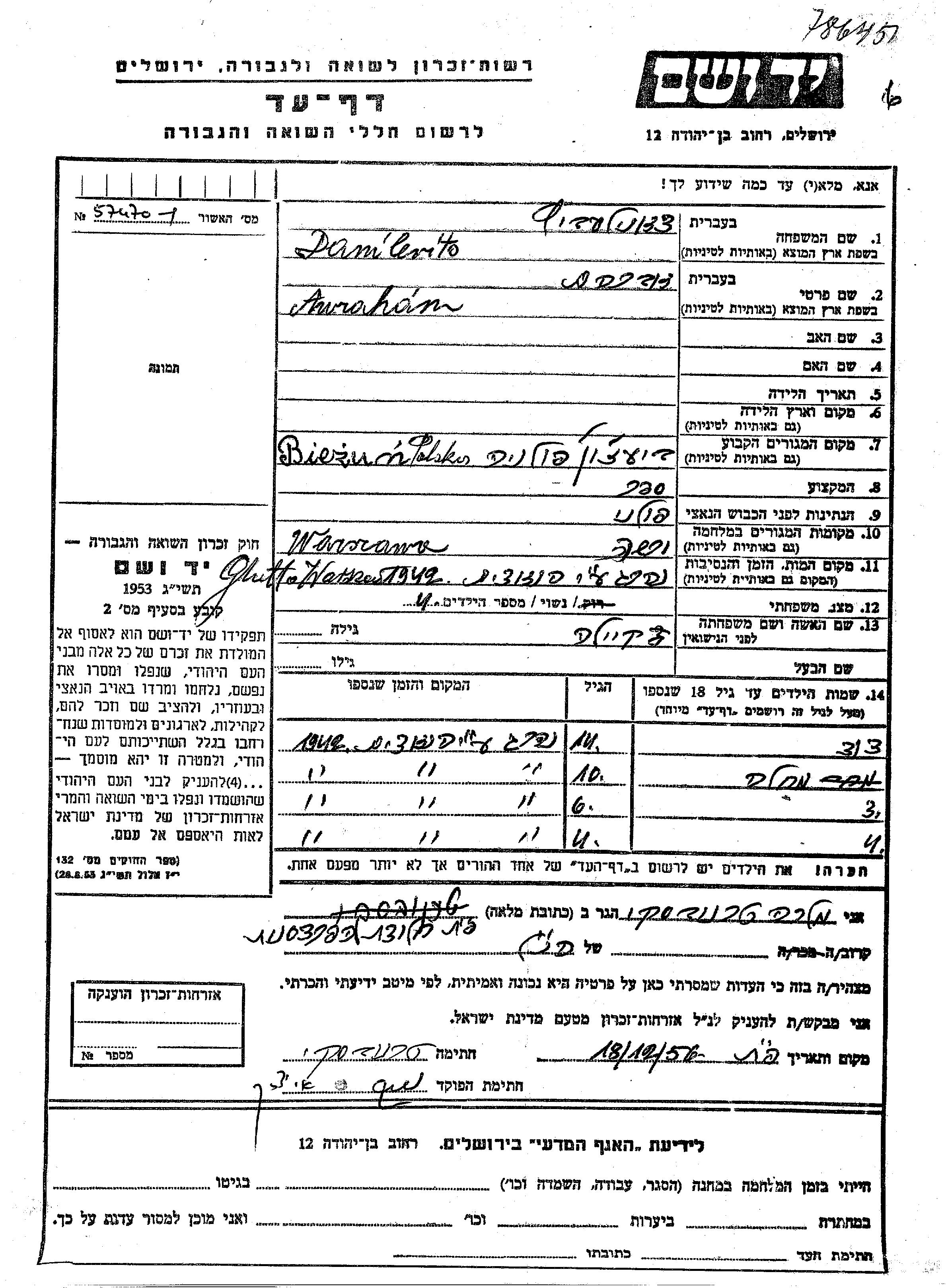 יד ושם - המפעל להנצחת השמות בדפי עד