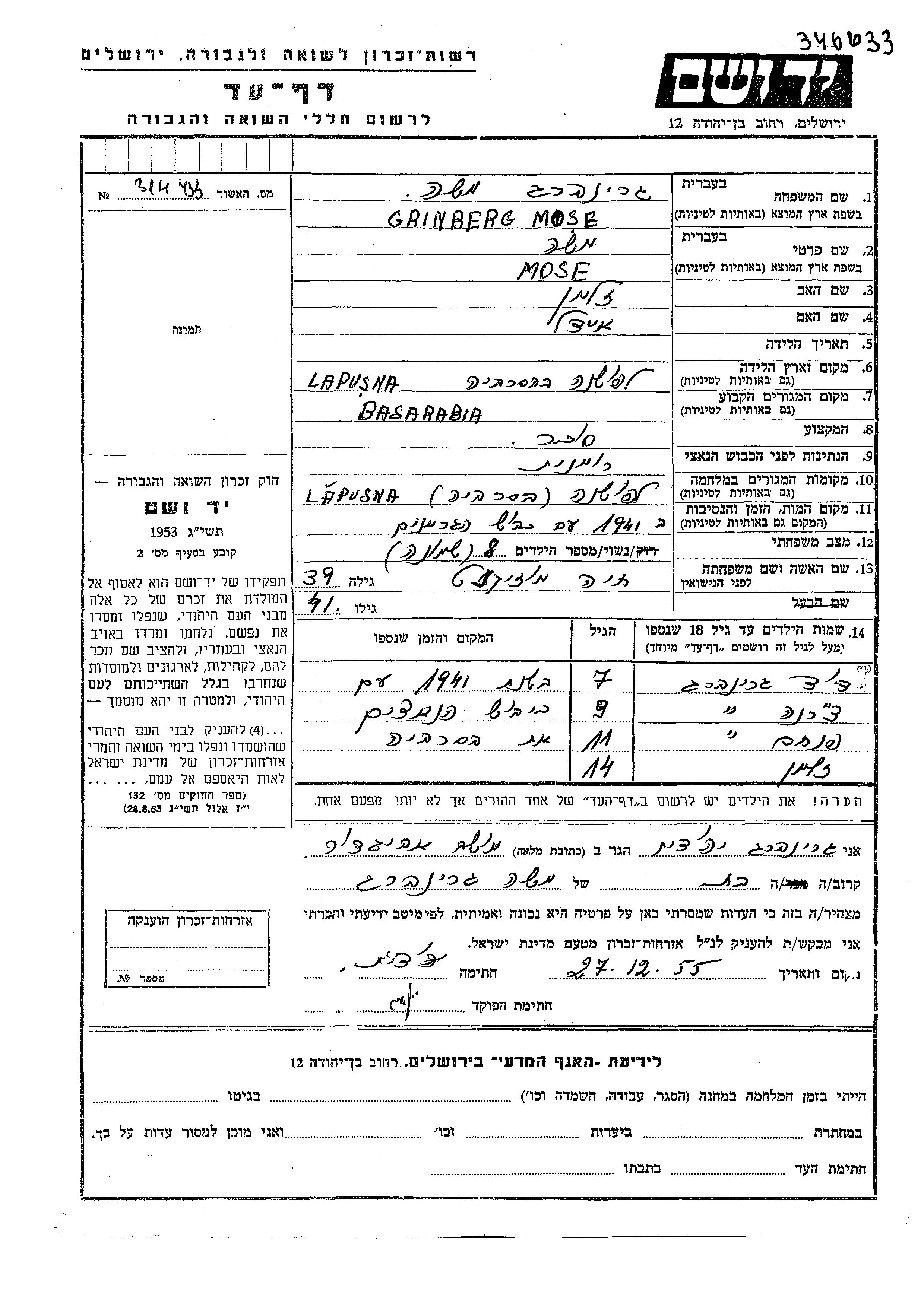 יד ושם - המפעל להנצחת השמות בדפי עד