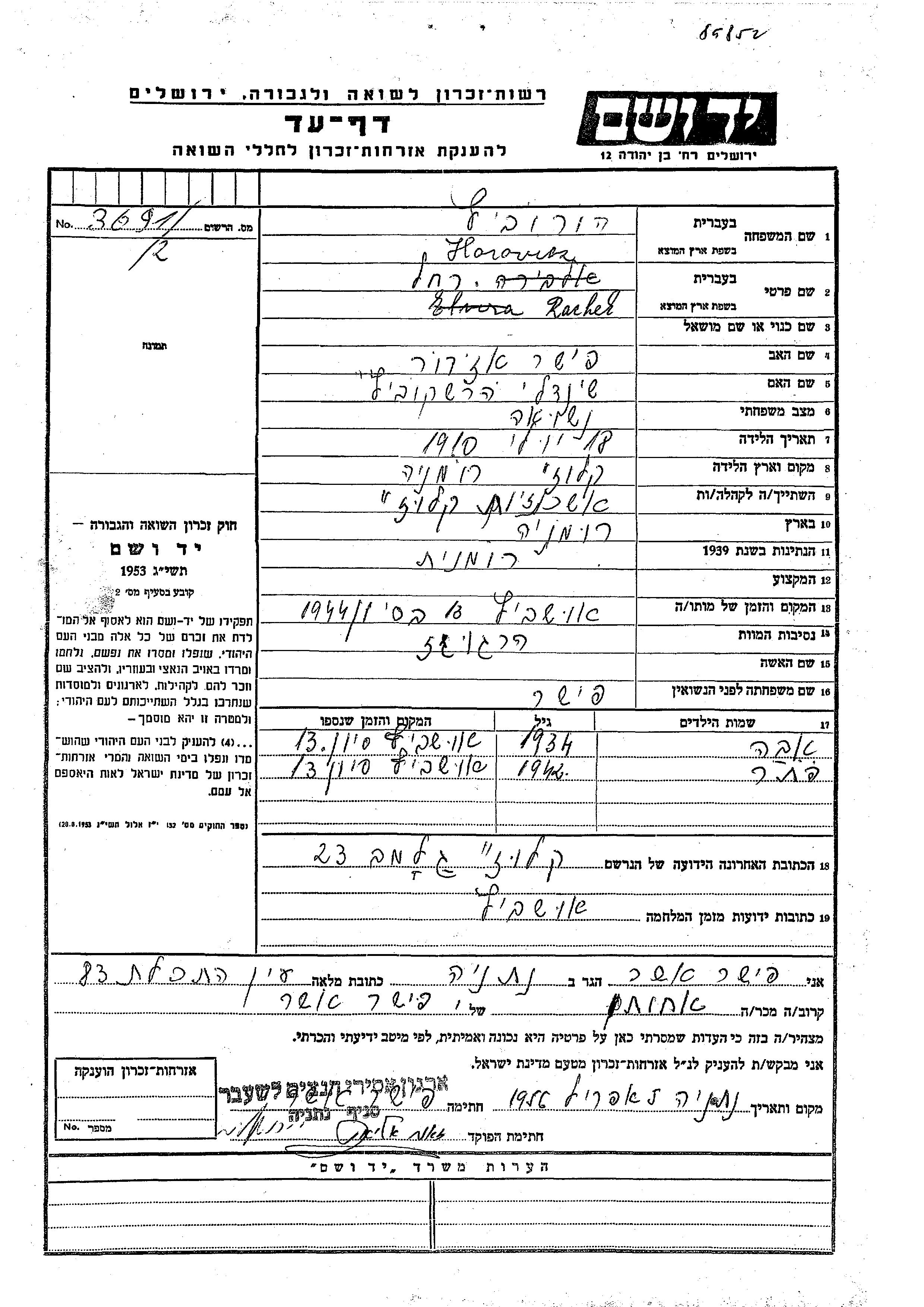 Horoviz פתר 1942 מקום לא רשום, דף-עד