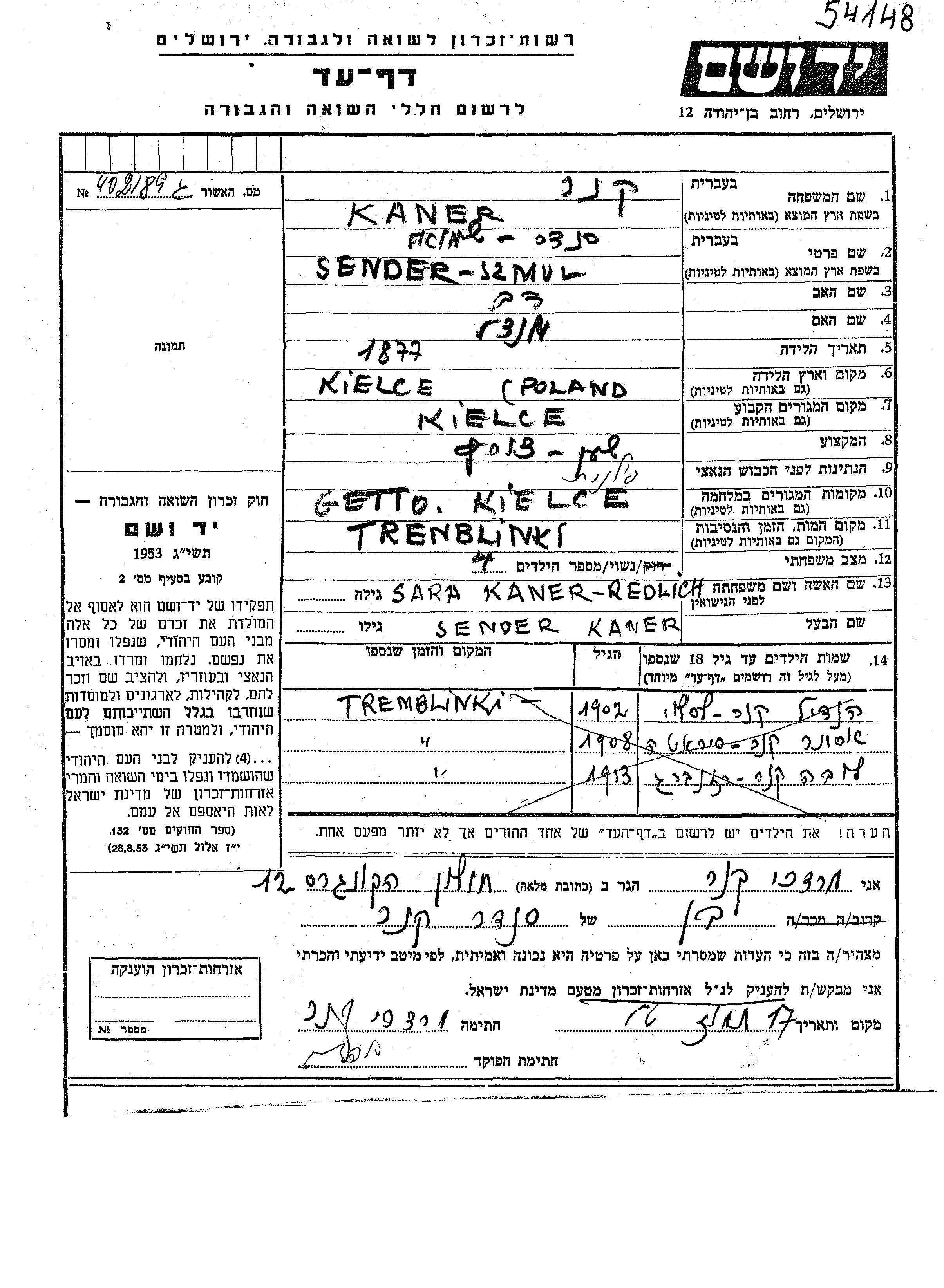 הנדיל קנר נולד/ה בשנת 1902 לSender Szmul ושרה לבית Redlich. לפני מלחמת העולם השניה התגורר/התגוררה בKielce שבפולין. בזמן המלחמה הוא/היא היה/היתה בKielce שבפולין. הנדיל נרצח/ה בשואה.