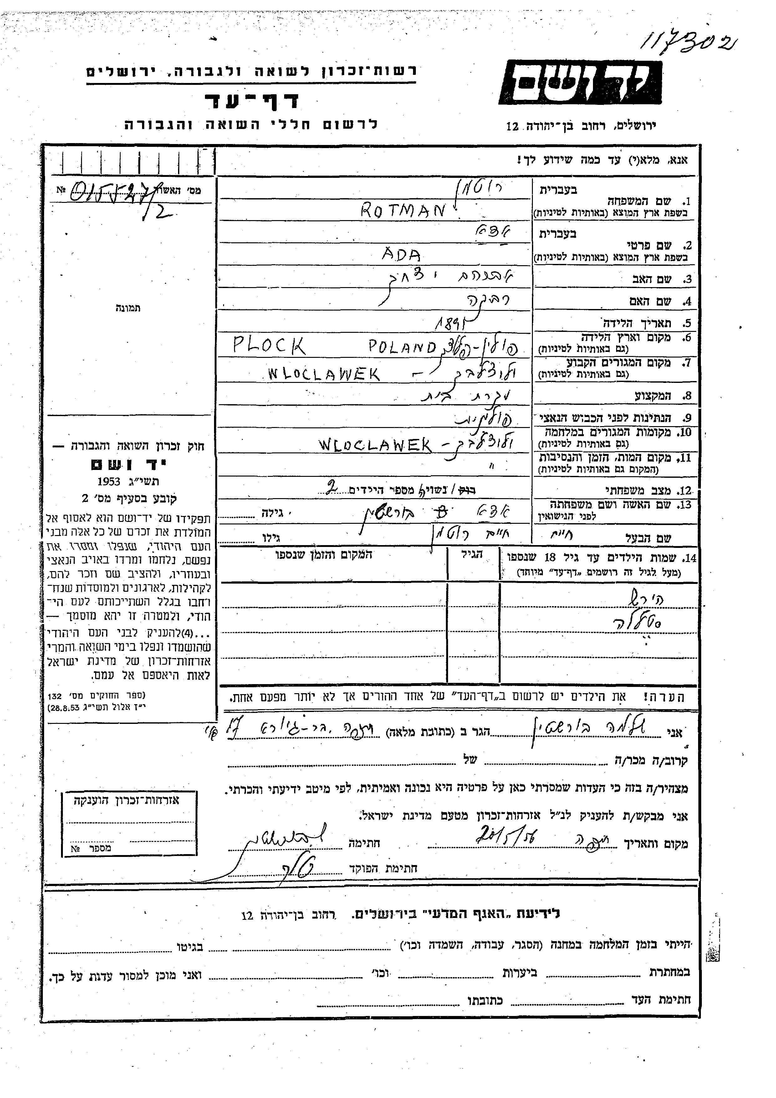 סטלה רוטמן נולדה לחיים ואדא עדה לבית בורשטין. היא היתה ילדה. לפני מלחמת העולם השניה התגוררה בWloclawek שבפולין. בזמן המלחמה היא היתה בWloclawek שבפולין. סטלה נרצחה בשואה.