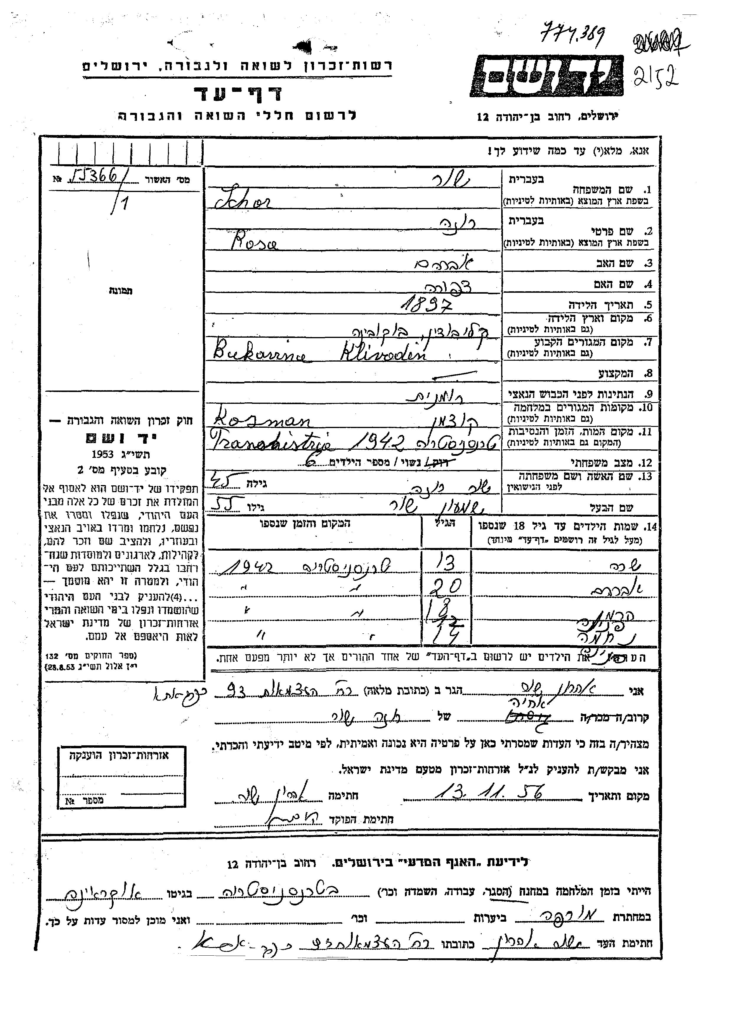 חיפוש שם מוסר דף העד. חיפוש לפי כל שם פרטי, כולל כינוי או שם חיבה