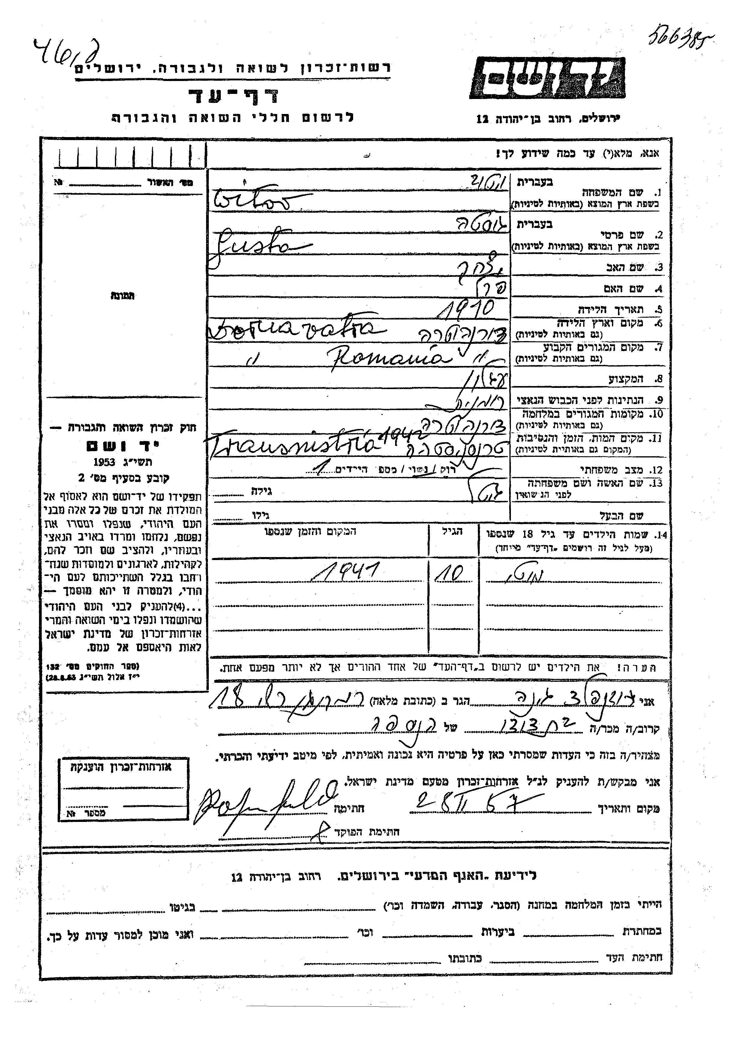 היא נרצחה בשואה. מקום המוות: Transnistria שבאוקראינה (ברה"מ) בשנת 1942.