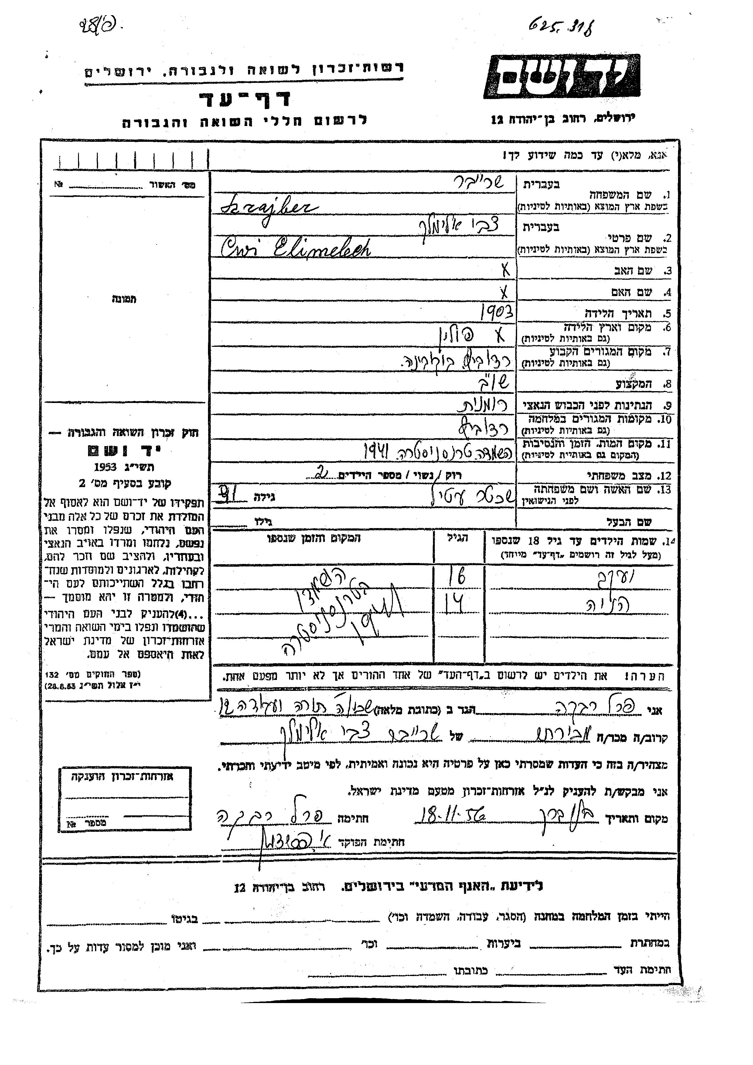 יד ושם - המפעל להנצחת השמות בדפי עד