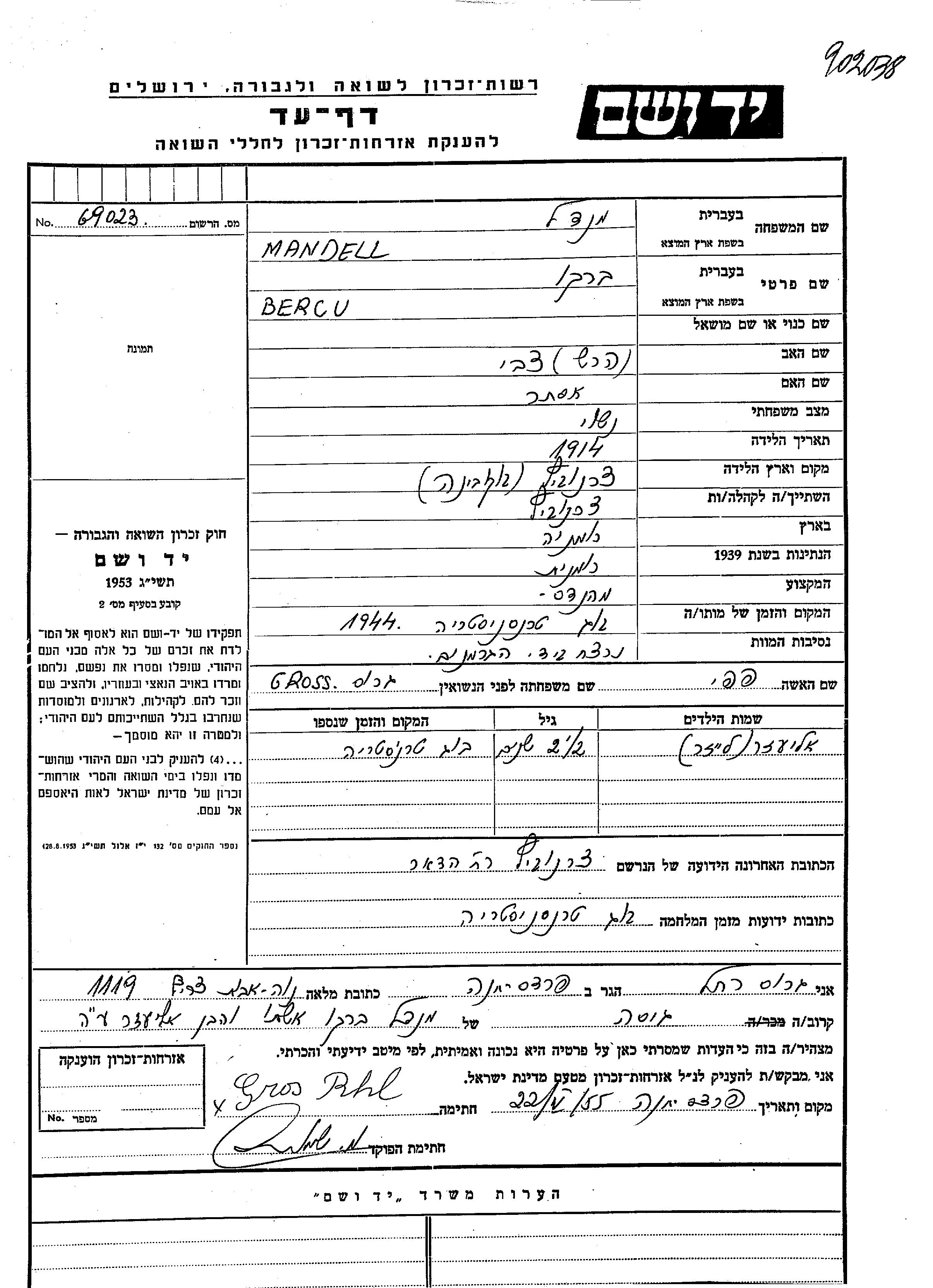 חיפוש שם מוסר דף העד. חיפוש לפי כל שם פרטי, כולל כינוי או שם חיבה