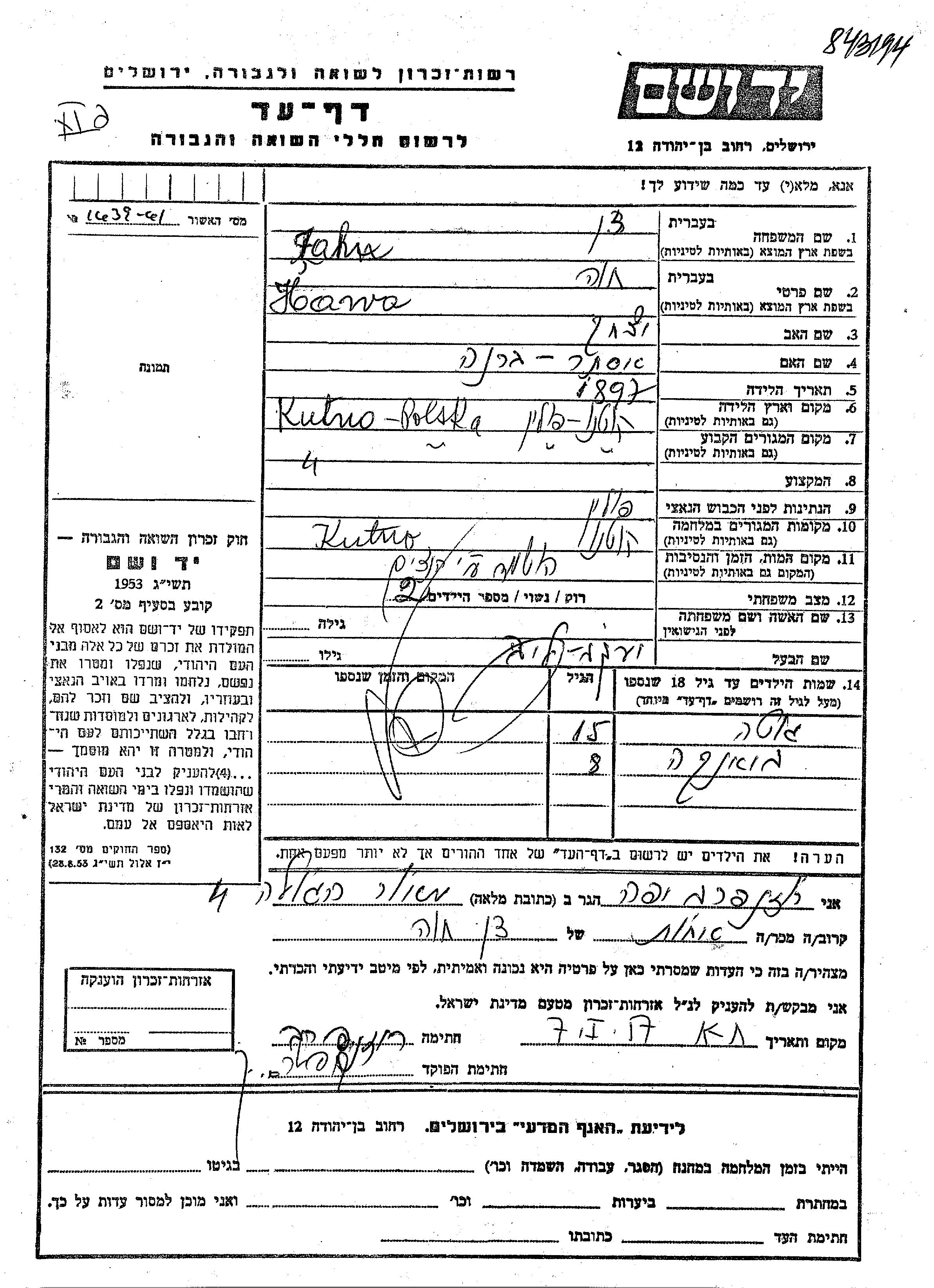 יד ושם - המפעל להנצחת השמות בדפי עד