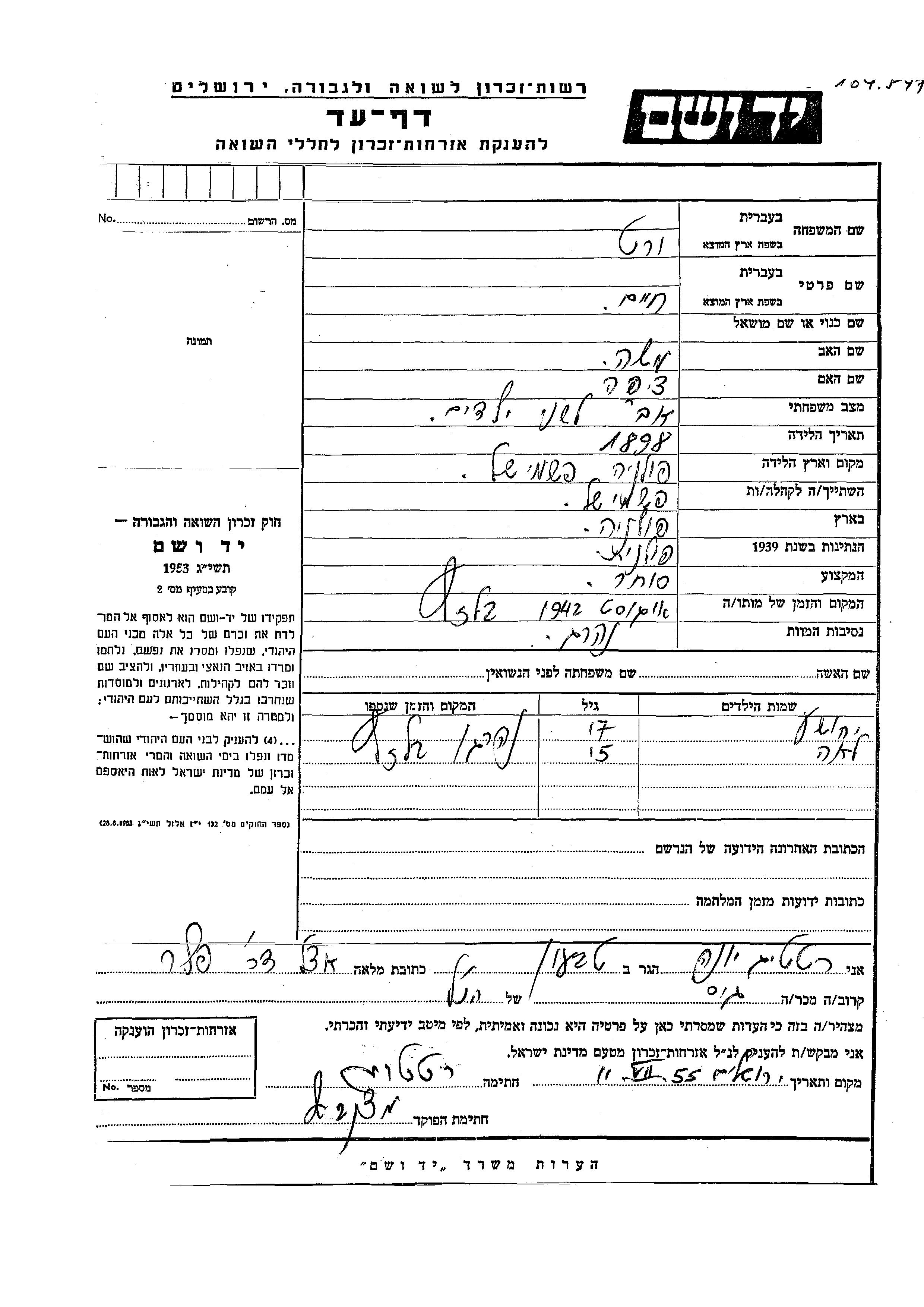 יד ושם - המפעל להנצחת השמות בדפי עד