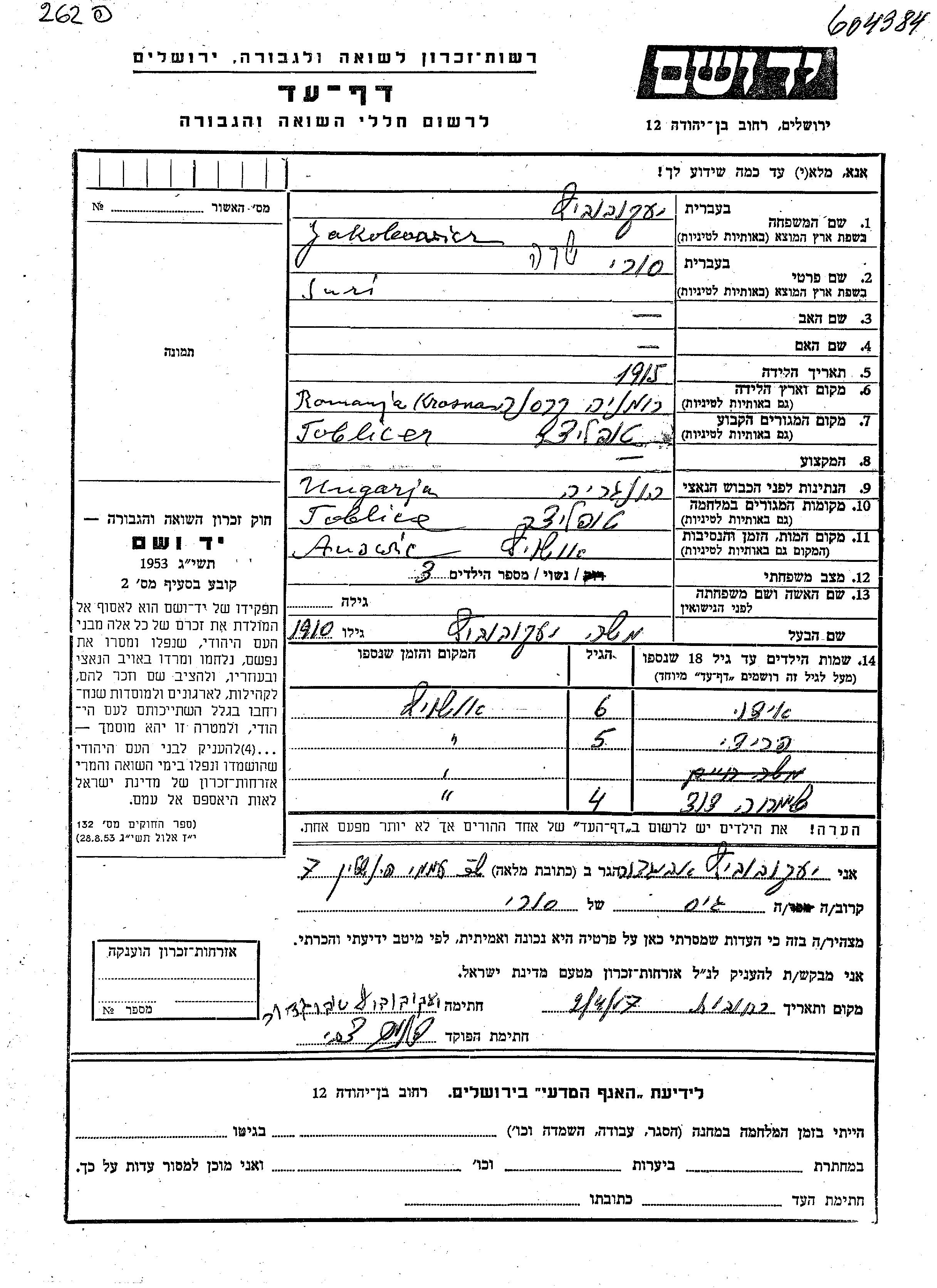 Jakobowicz משה חיים Toplita, רומניה דף-עד
