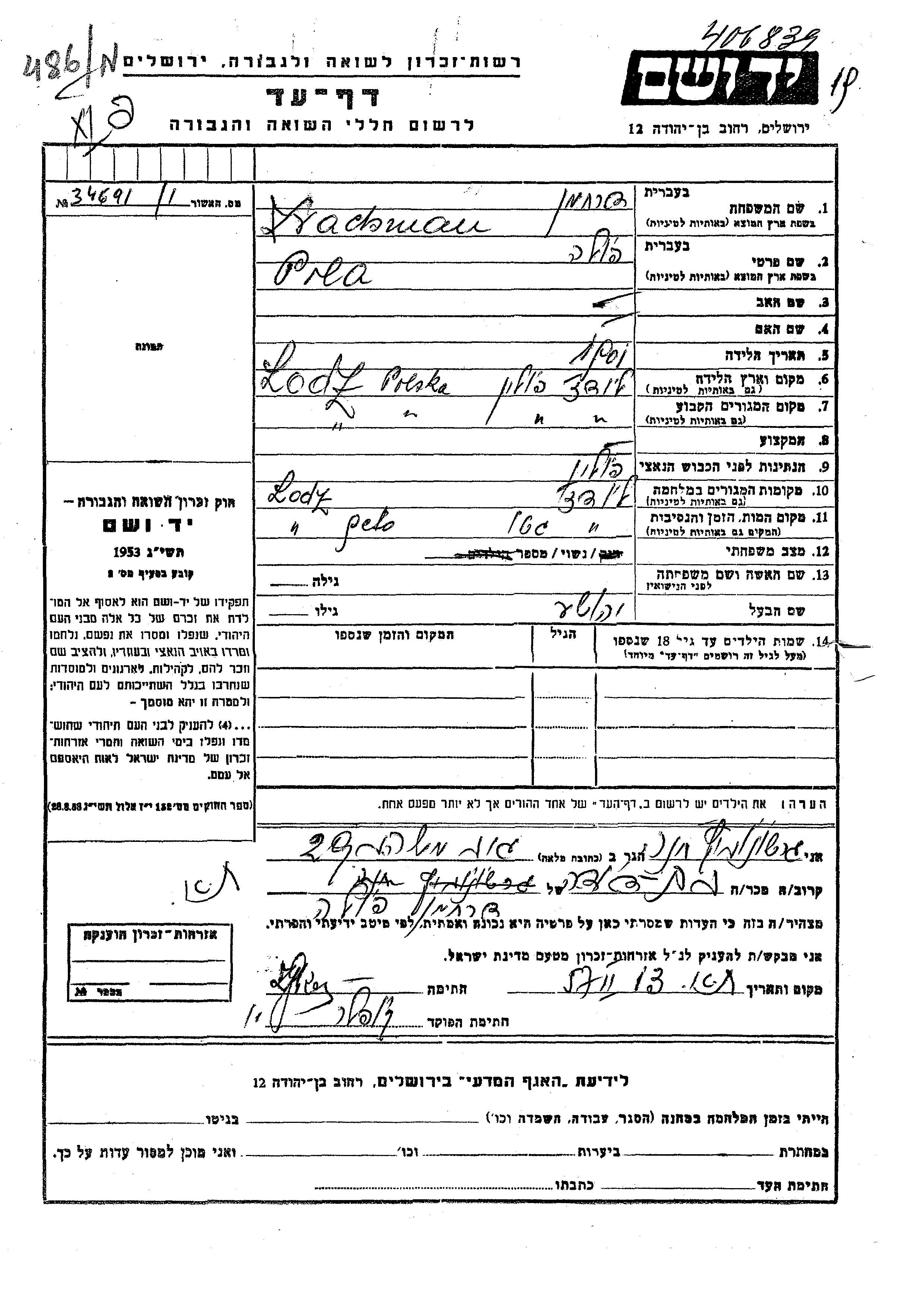 יד ושם - המפעל להנצחת השמות בדפי עד
