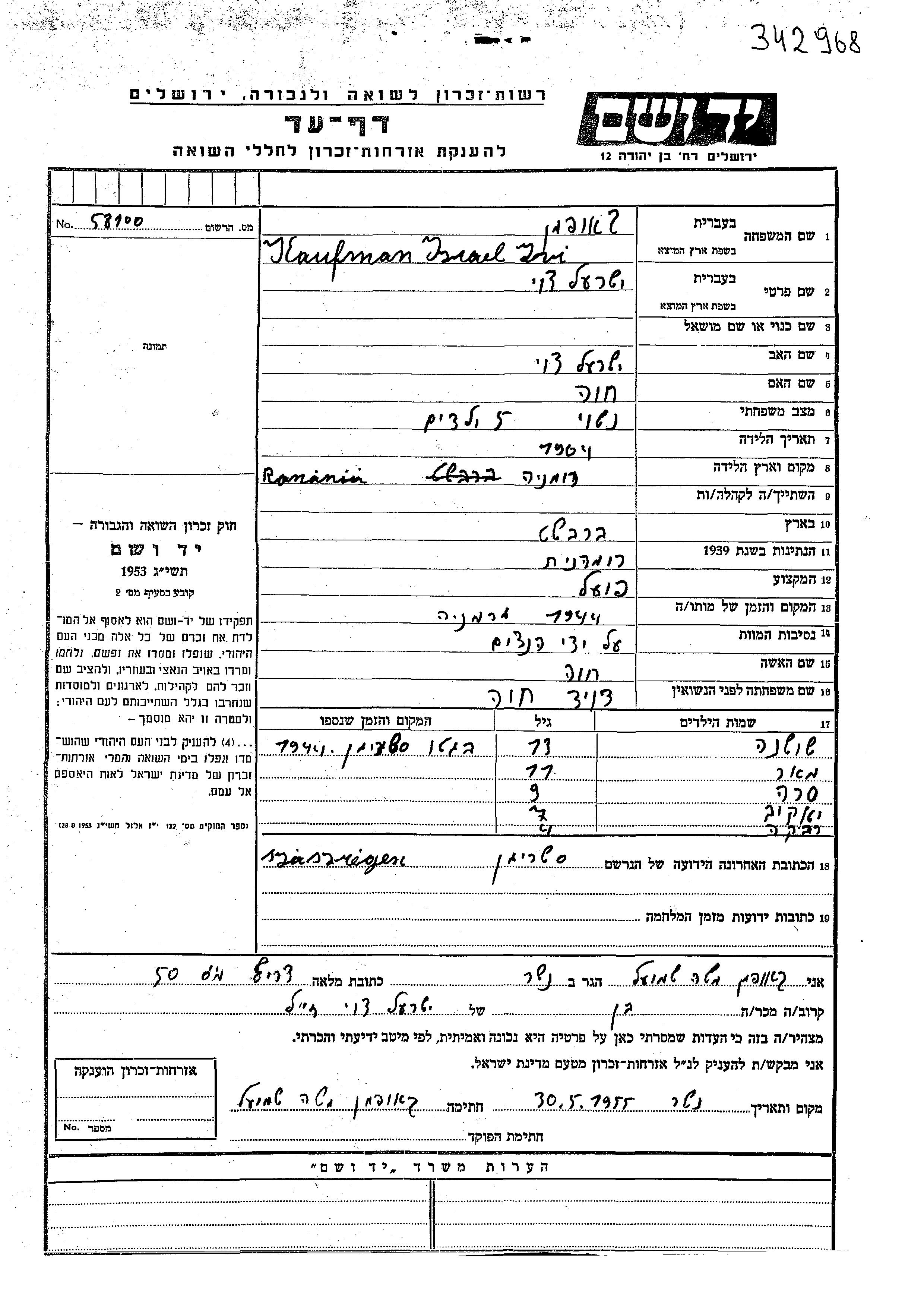יד ושם - המפעל להנצחת השמות בדפי עד