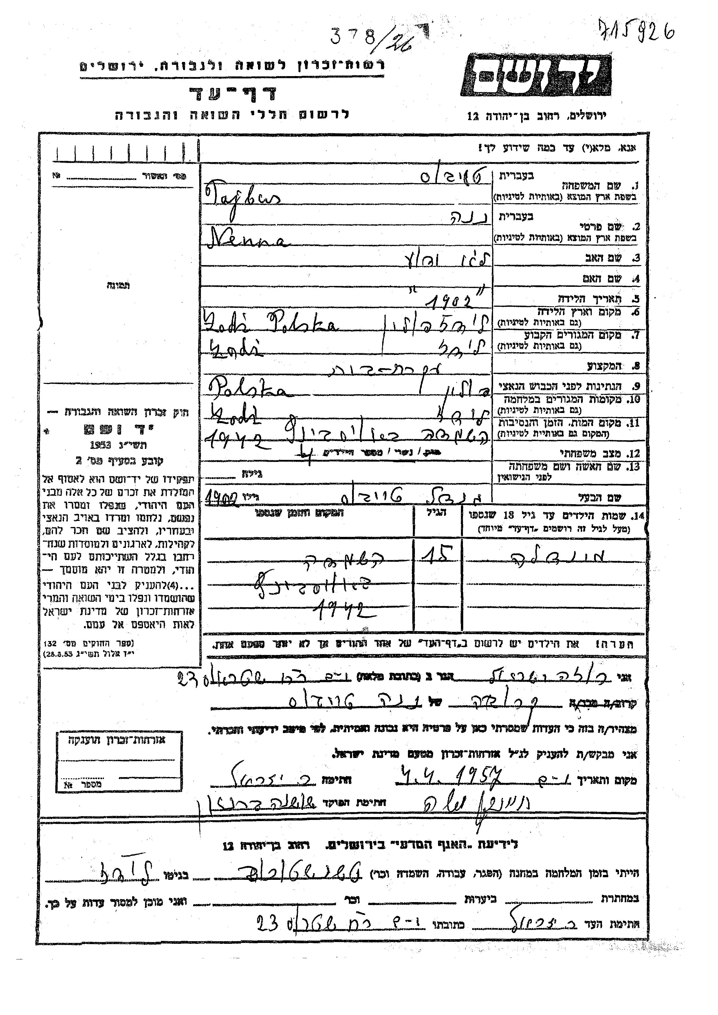 יד ושם - המפעל להנצחת השמות בדפי עד