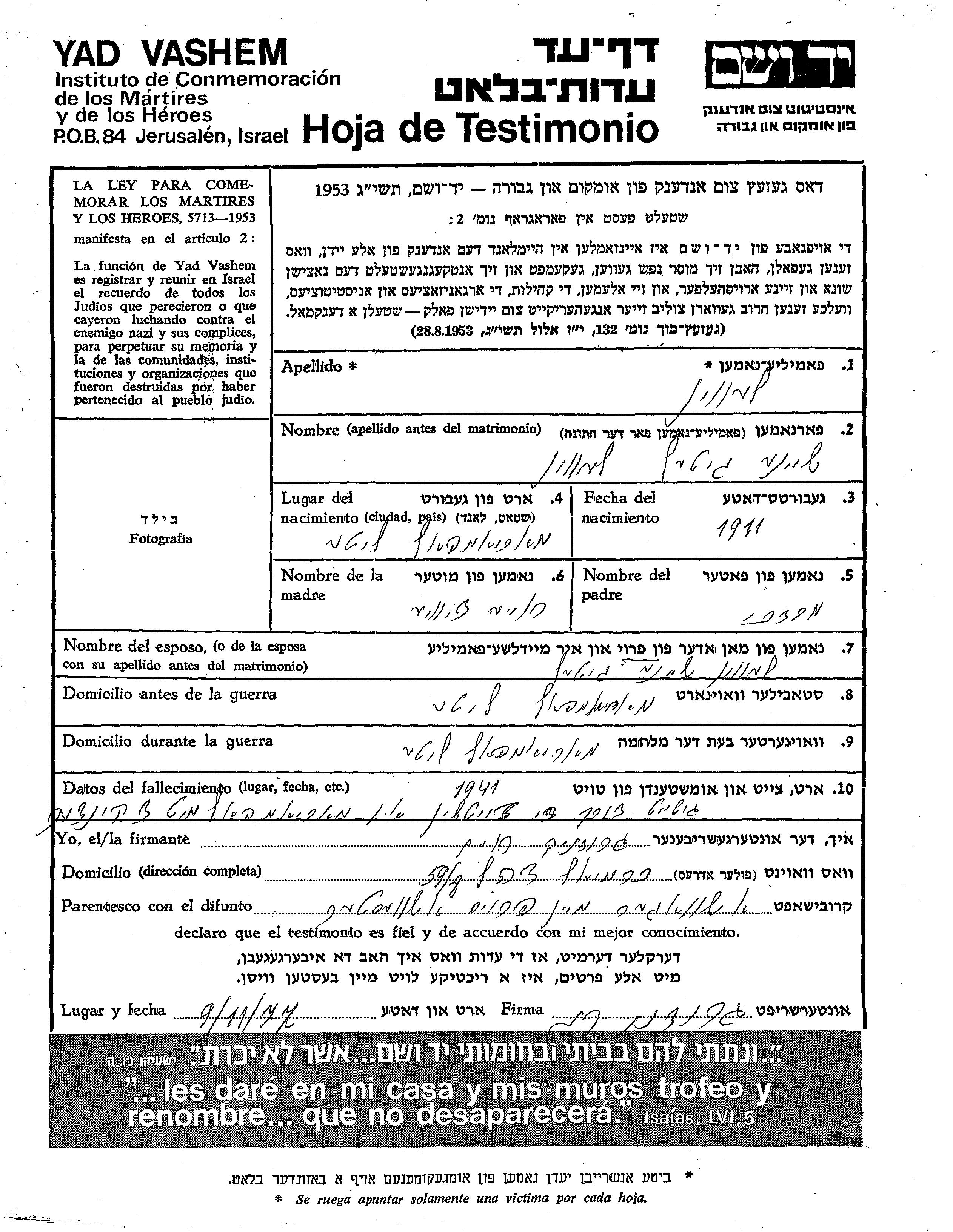 יד ושם - המפעל להנצחת השמות בדפי עד