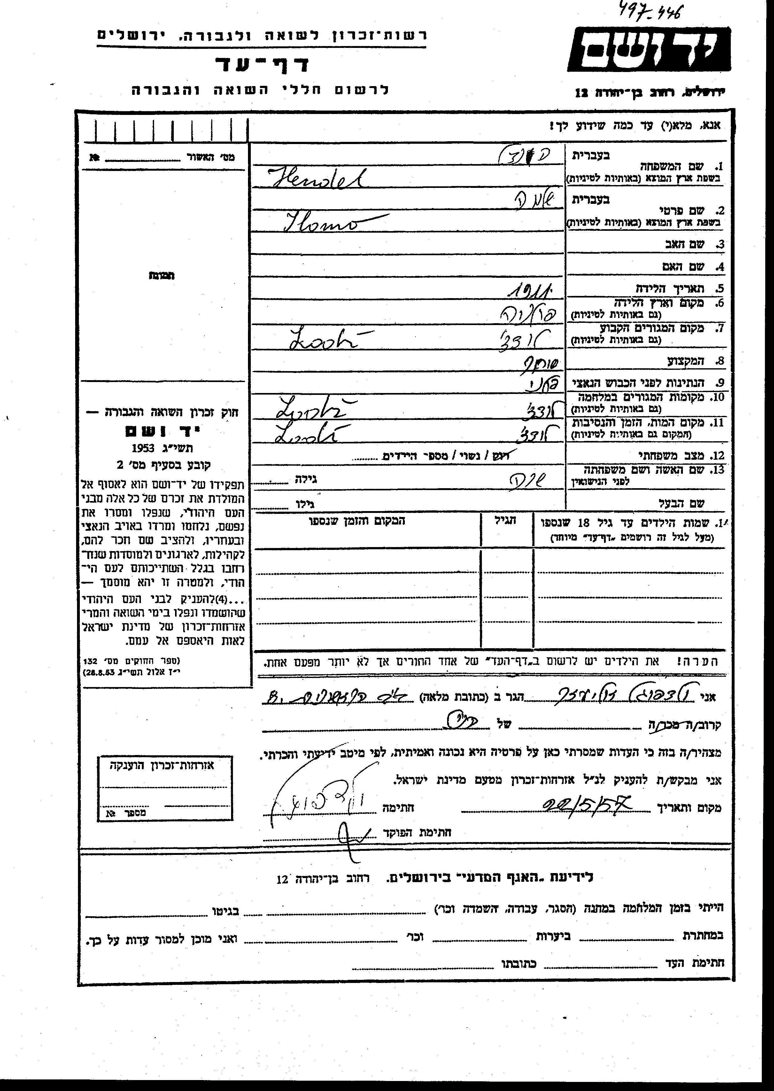 יד ושם - המפעל להנצחת השמות בדפי עד