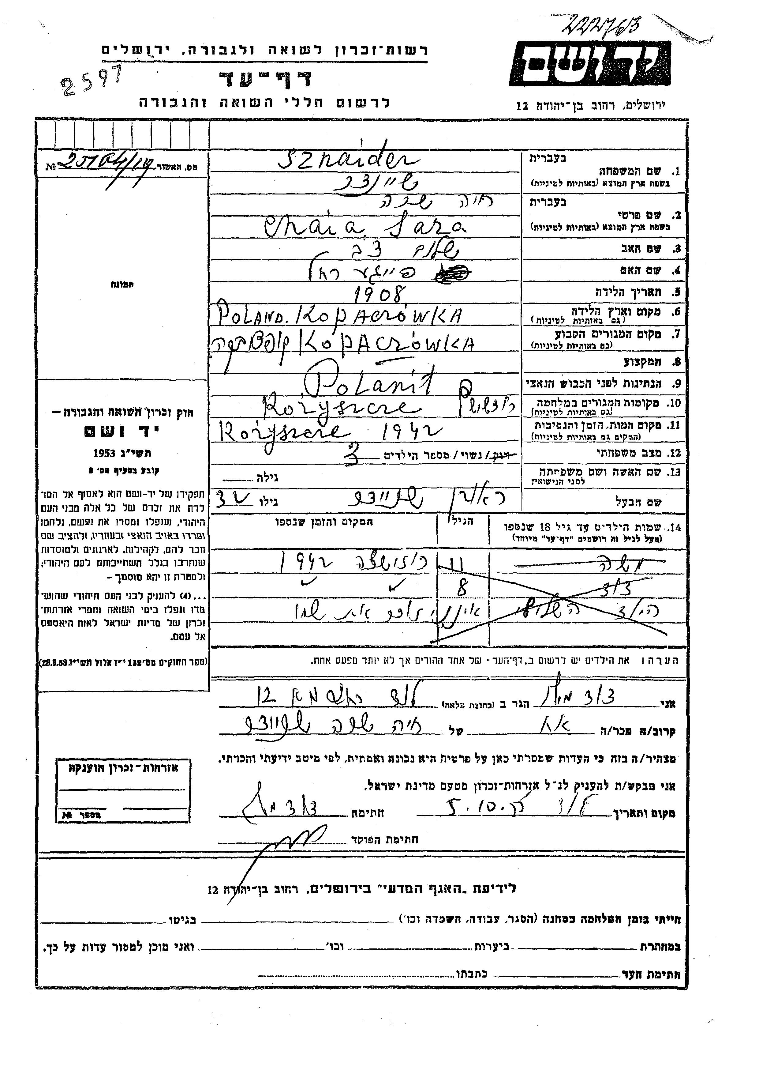יד ושם - המפעל להנצחת השמות בדפי עד