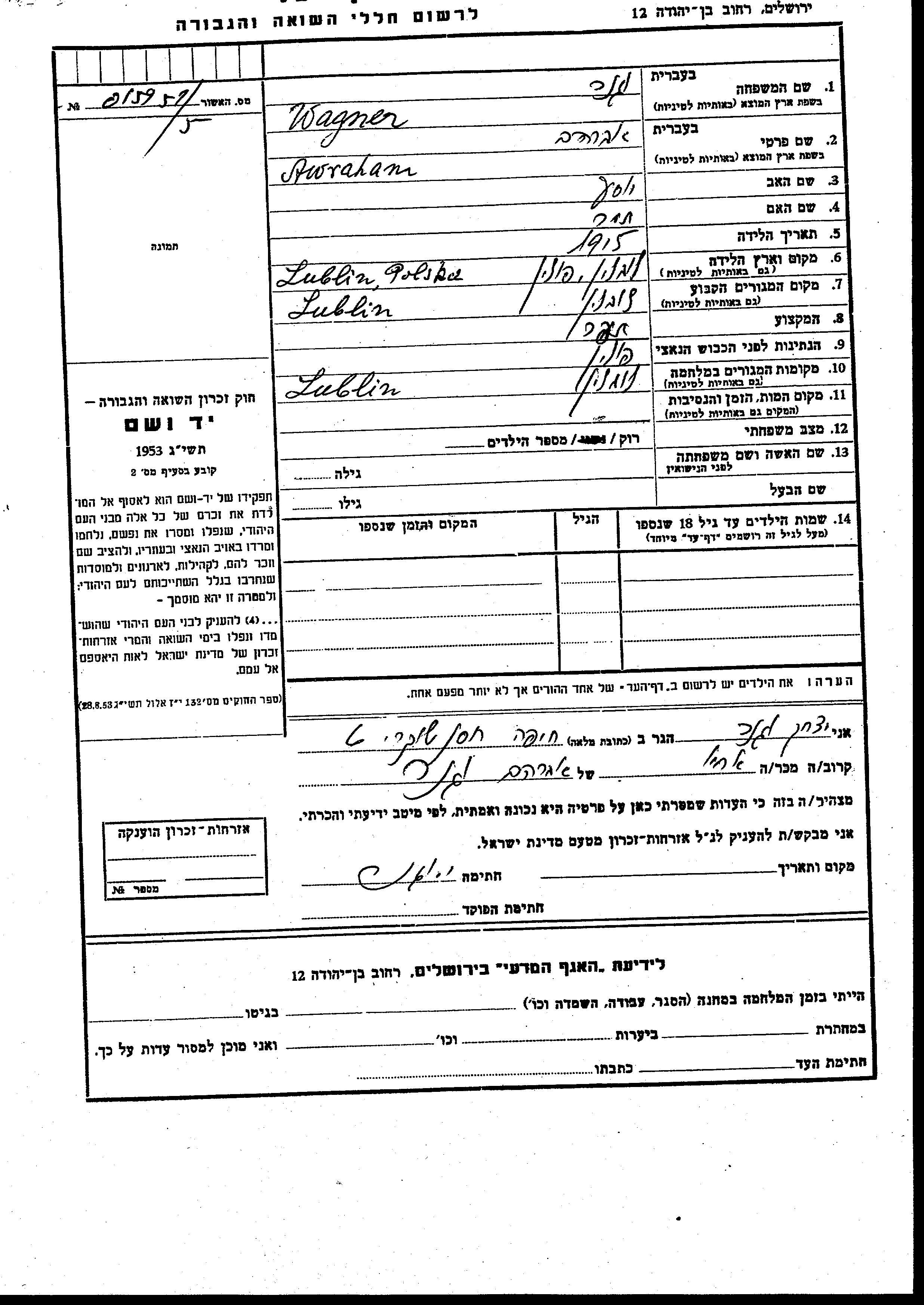 Wagner Awraham 1915 Lublin, פולין דף-עד