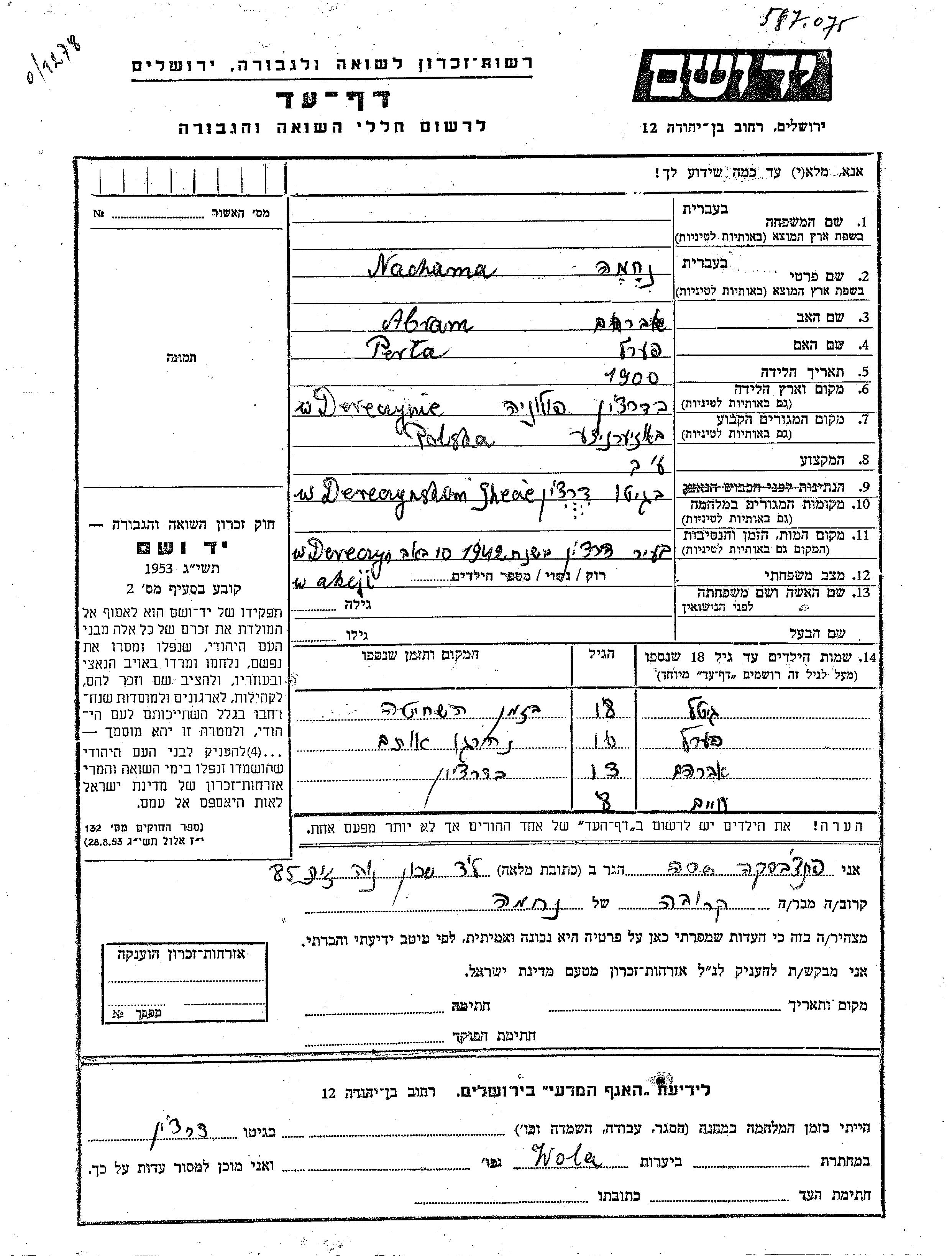 יד ושם - המפעל להנצחת השמות בדפי עד