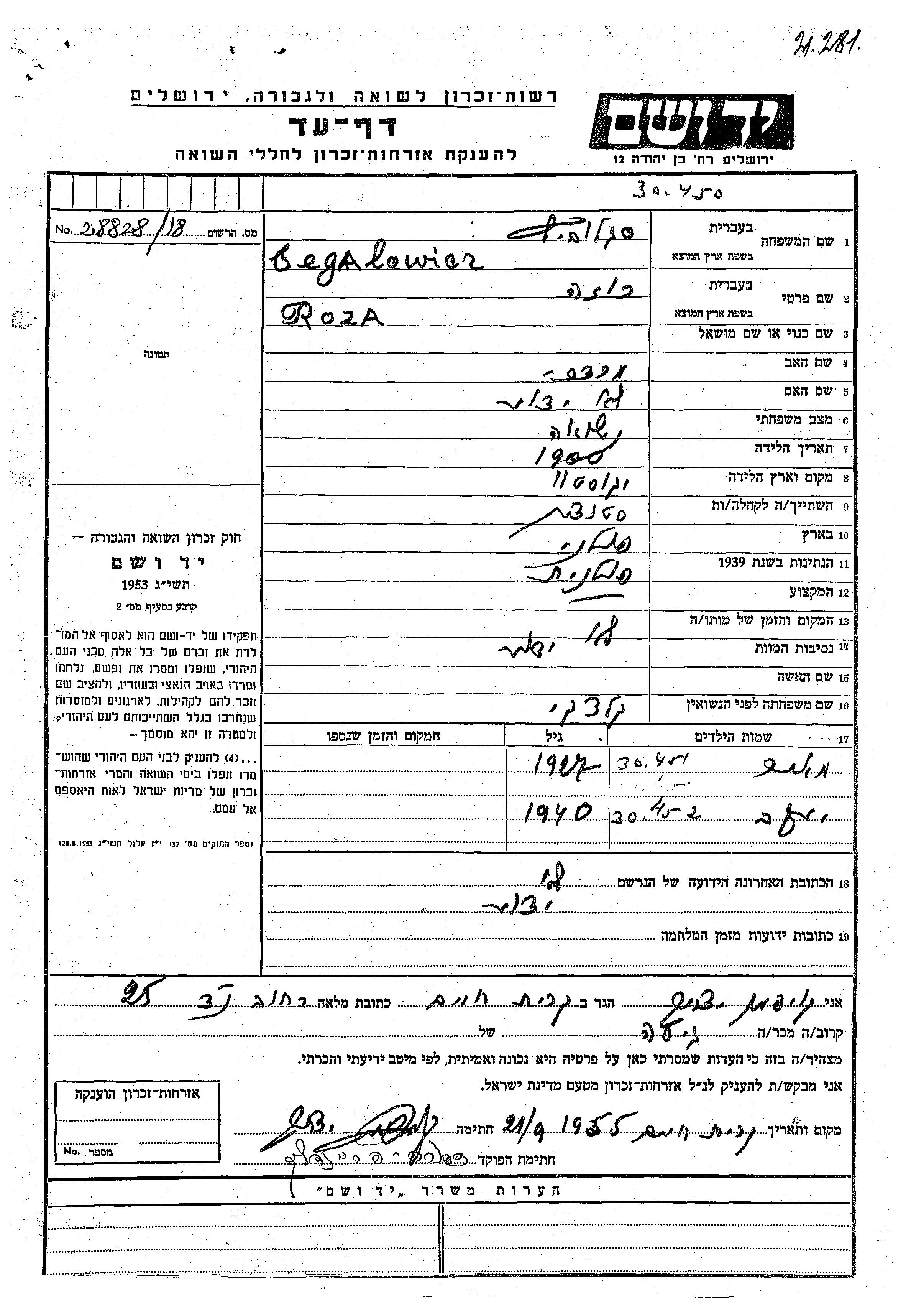 יד ושם - המפעל להנצחת השמות בדפי עד