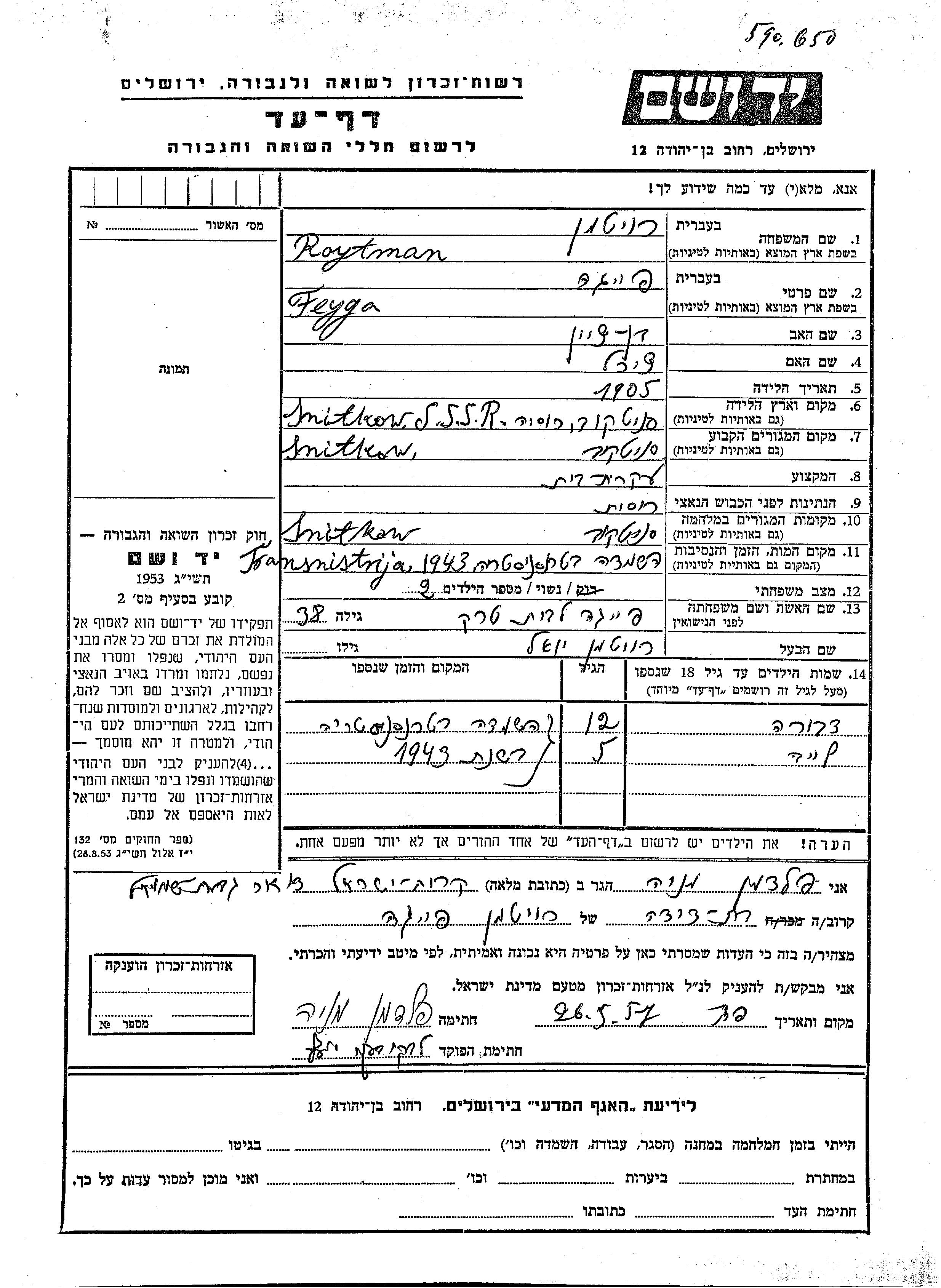דבורה Roytman נולדה ליואל וFeyga לבית טרק. היא היתה ילדה. לפני מלחמת העולם השניה התגוררה בSnitkow שבאוקראינה (ברה"מ). בזמן המלחמה היא היתה בSnitkow שבאוקראינה (ברה"מ). דבורה נרצחה בשואה.